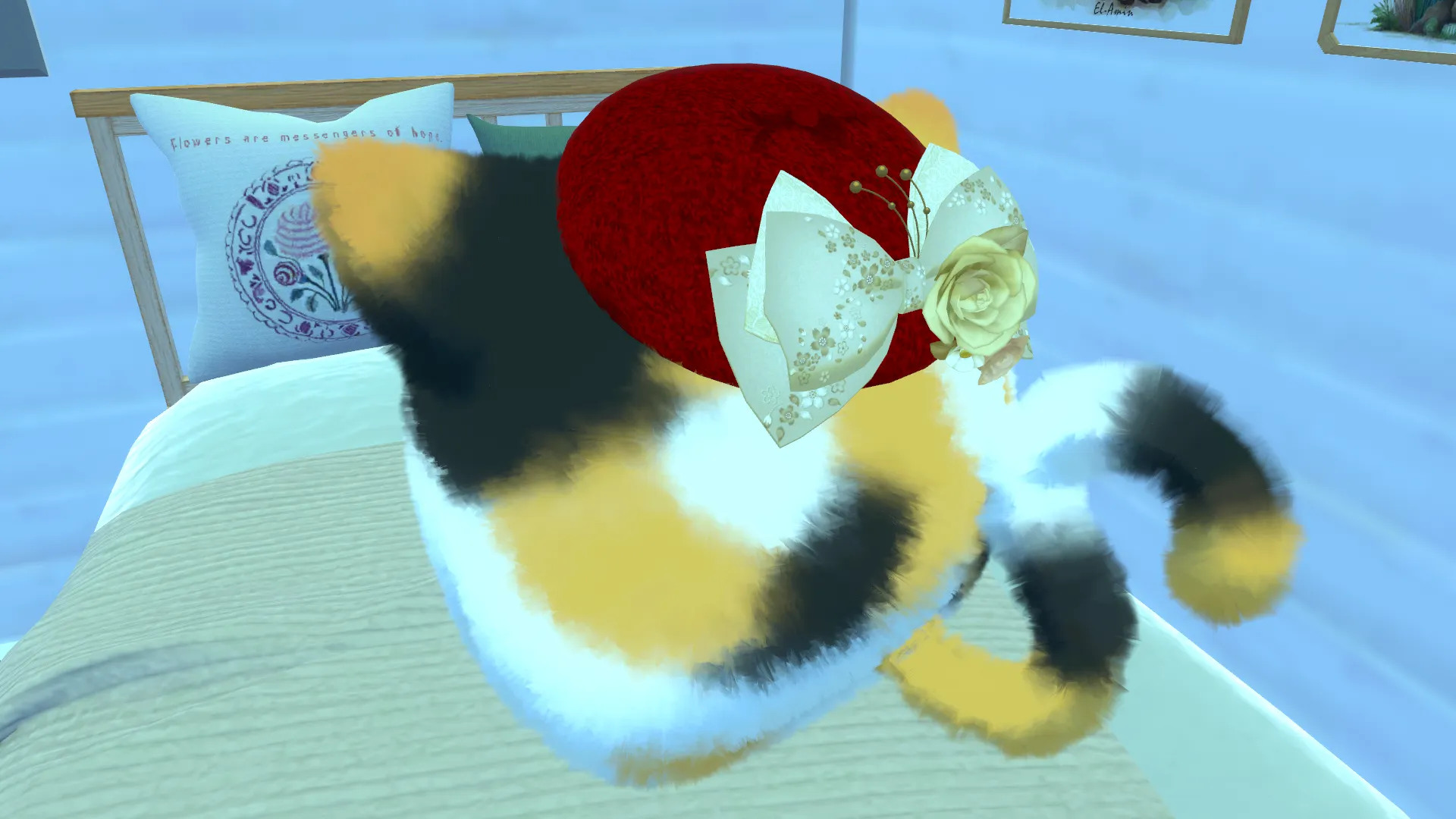 ねこですnねこもおしゃれをしますnnおぼうしとがまぐちのいろをあわせてあるのがぽいんとですnおりぼんはわふうでにほんねことしてのたしなみです