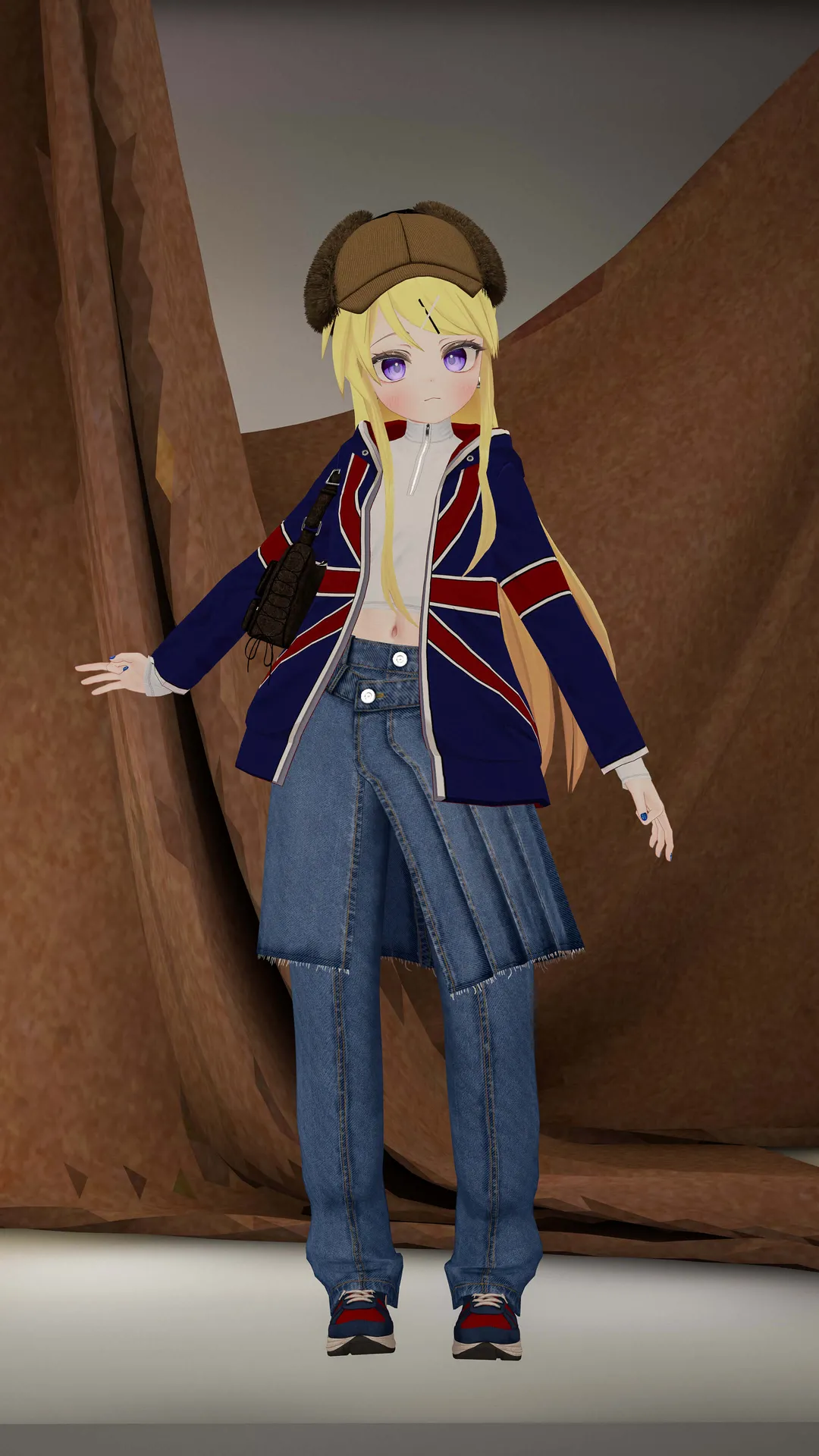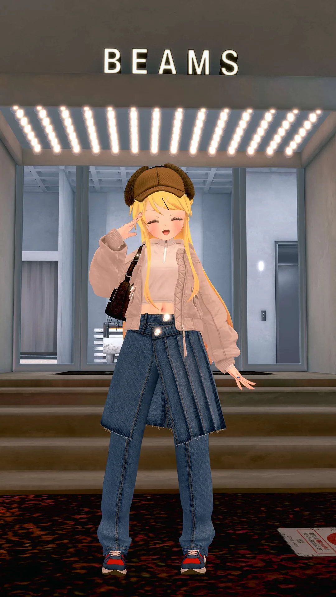 BEAMS「Street Chic Style」の着用例。マヌカベースのカレン改変(https://kaihen.jp/post_detail/1709974030028x870639533506166800)に合わせてみました。nジーンズなパンツとスカートの組み合わせがおしゃれ~!トップスも細身でシルエットがきれいです。nそして重ね着がすごいしやすい。カレンのユニオンジャックパーカー、無調整で重ね着できちゃいます。