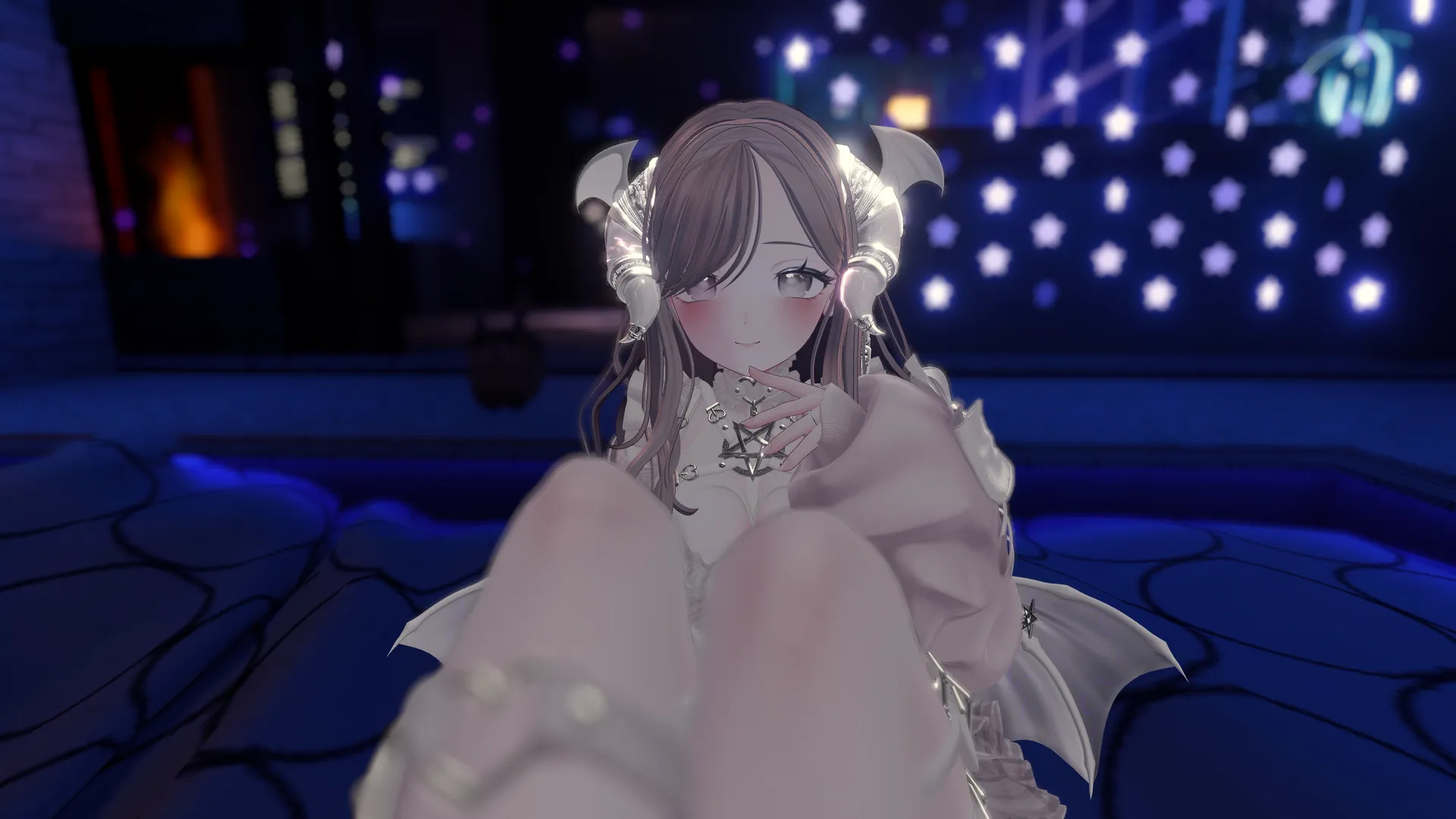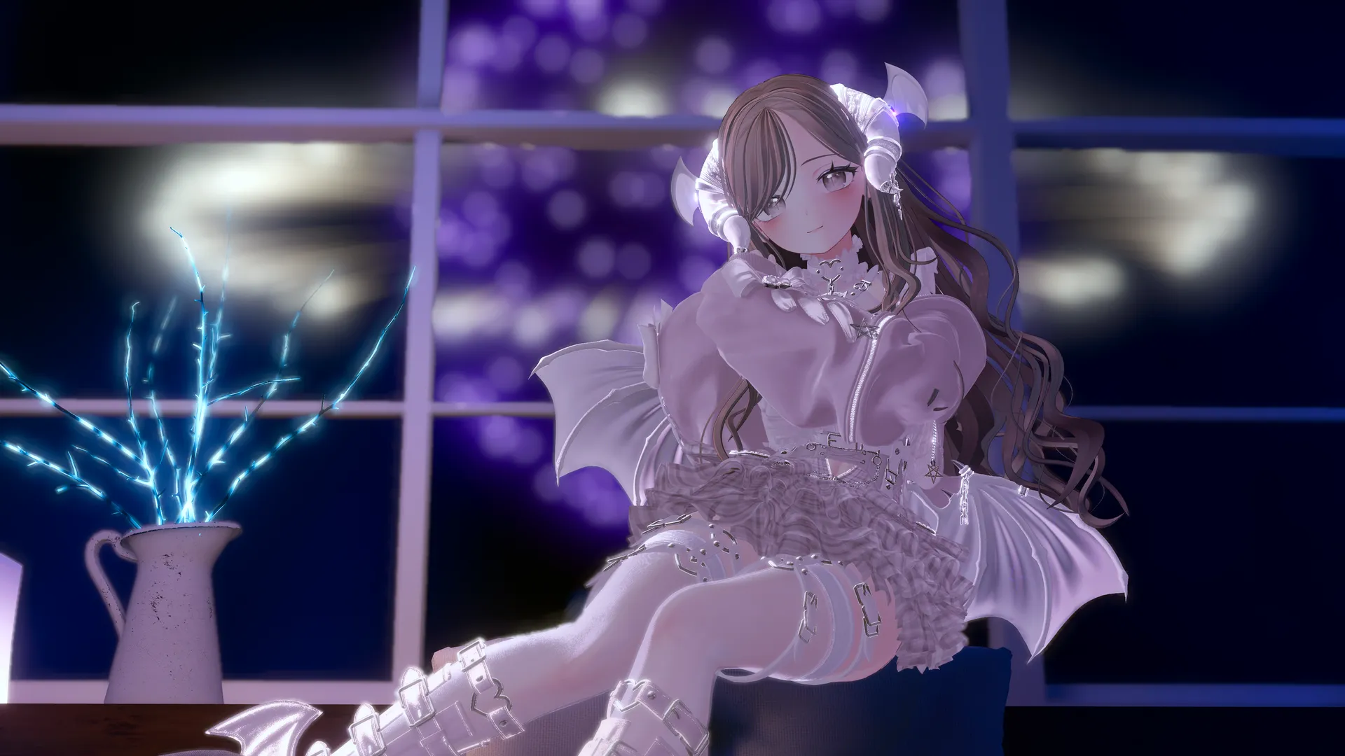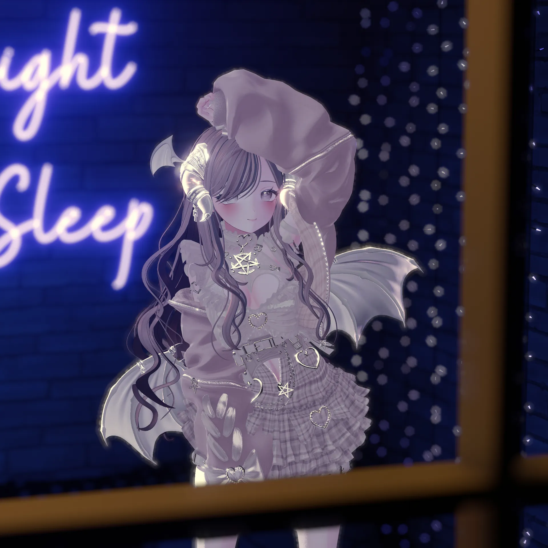 EXTENSION CLOTHING xサキュバス酒場コラボ衣装nnしなのAMSの顔プリセット2番をもとに顔を調整し、Eyeカラーをホワイトにしています。nn・こだわりポイントnAdultGALHairのマテリアルをしなのちゃんのデフォルトの髪に寄せるためカラーと影設定を変えています。n特徴的なサイドヘアを敢えて削除し、顔周りをすっきりさせました。nn・全体のイメージnゆるかわなベビーフェイスのお姉さんで仕上げました。悪魔の羽もそれに合わせて少し小さくしています。