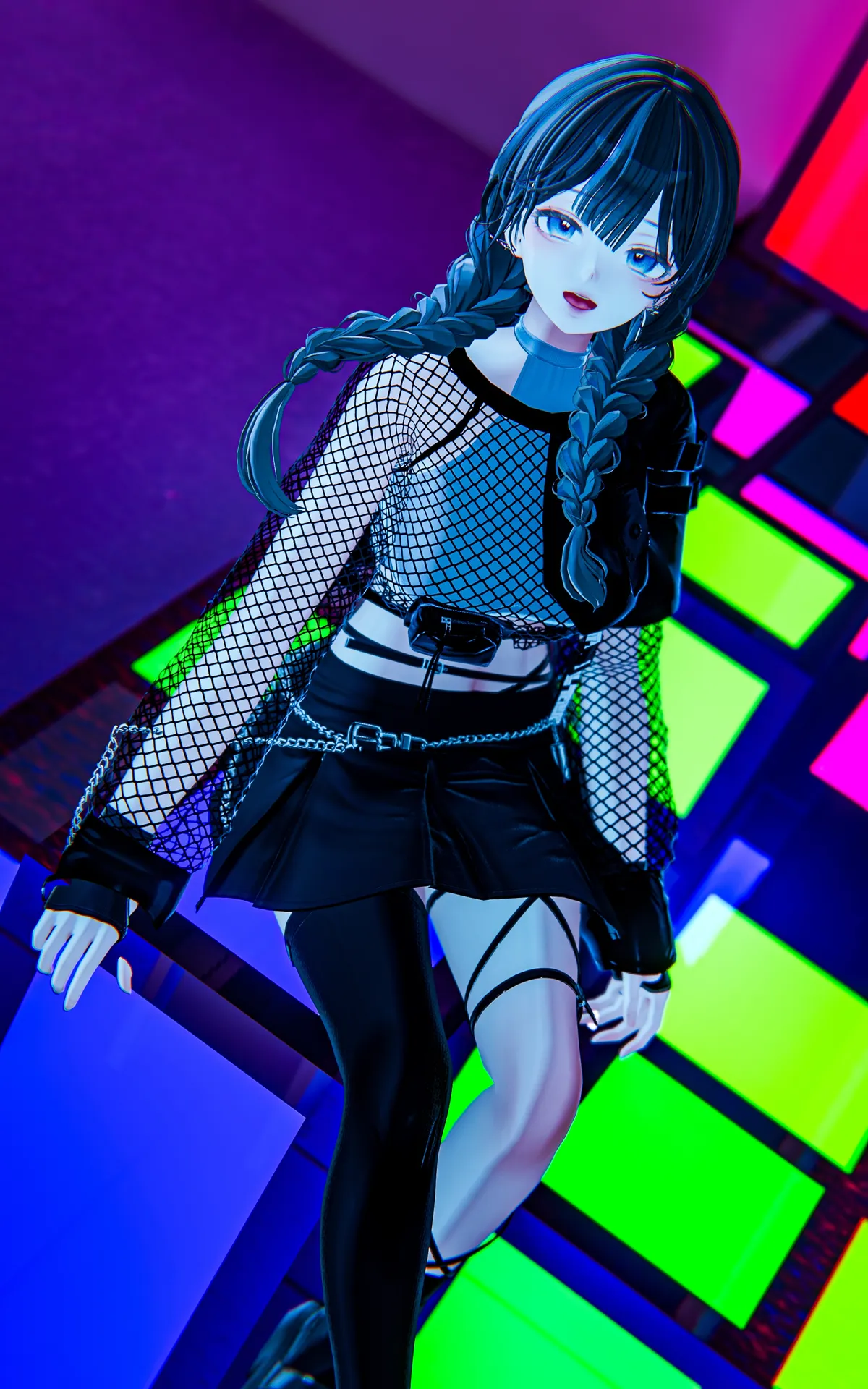 ※EYECLO様より商品提供を受けています。n【セミ対応衣装】メッシュトップス(アウター)【3D衣装】nhttps://booth.pm/ja/items/6284084nnメッシュトップスに合わせてクールなストリート系コーデを組みましたnスタイリッシュだけど女の子らしさをプラスしたくてスカートを選択しています