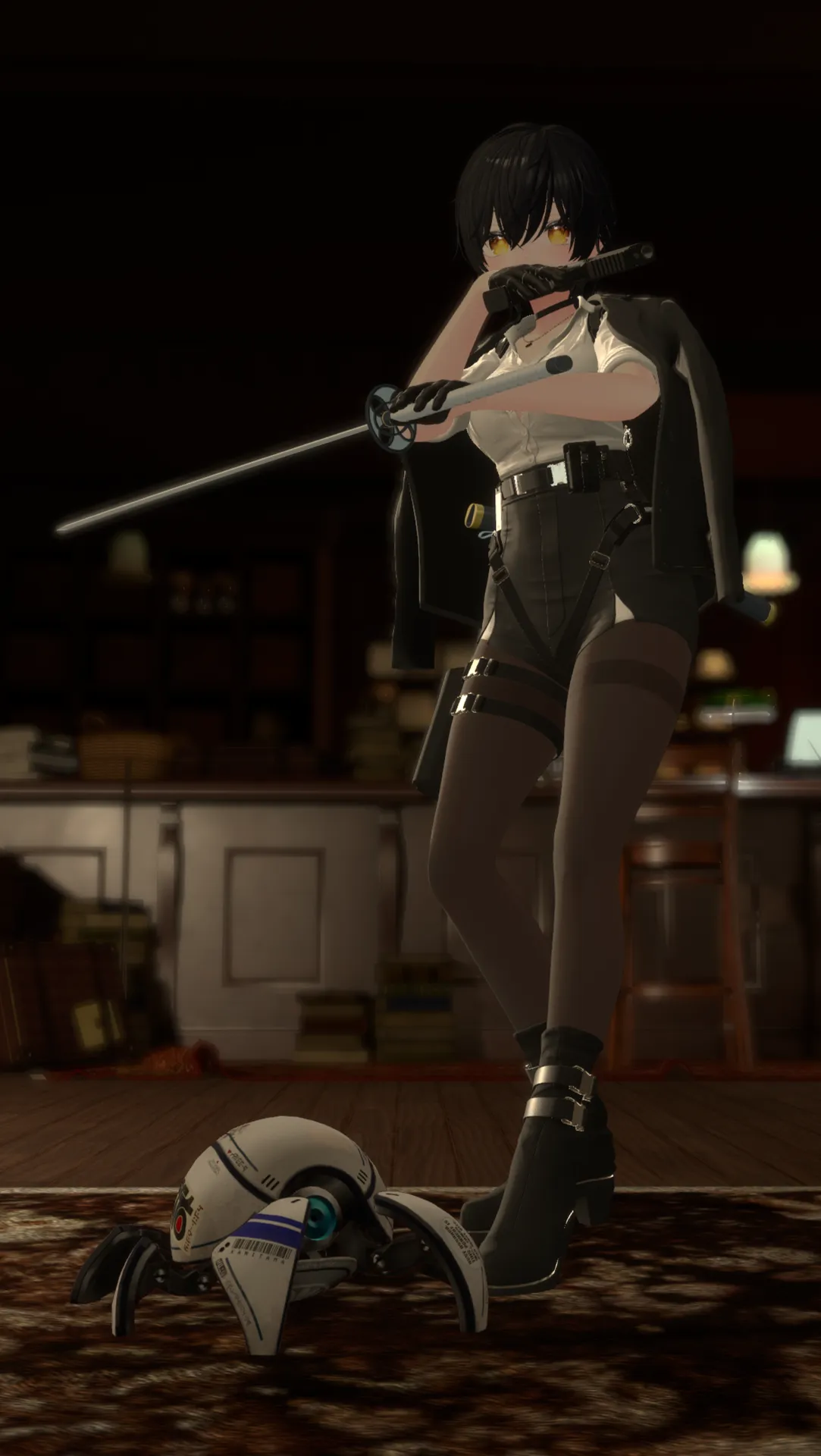 ステッカーチューンしたカニタマと一緒に任務へ向かいますn※刀は「夢幻冬暁」から拝借しています