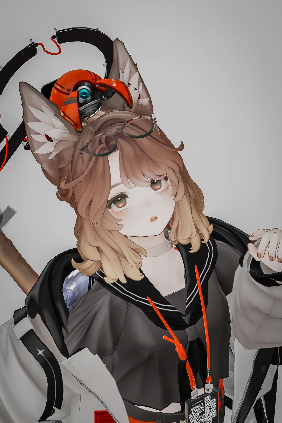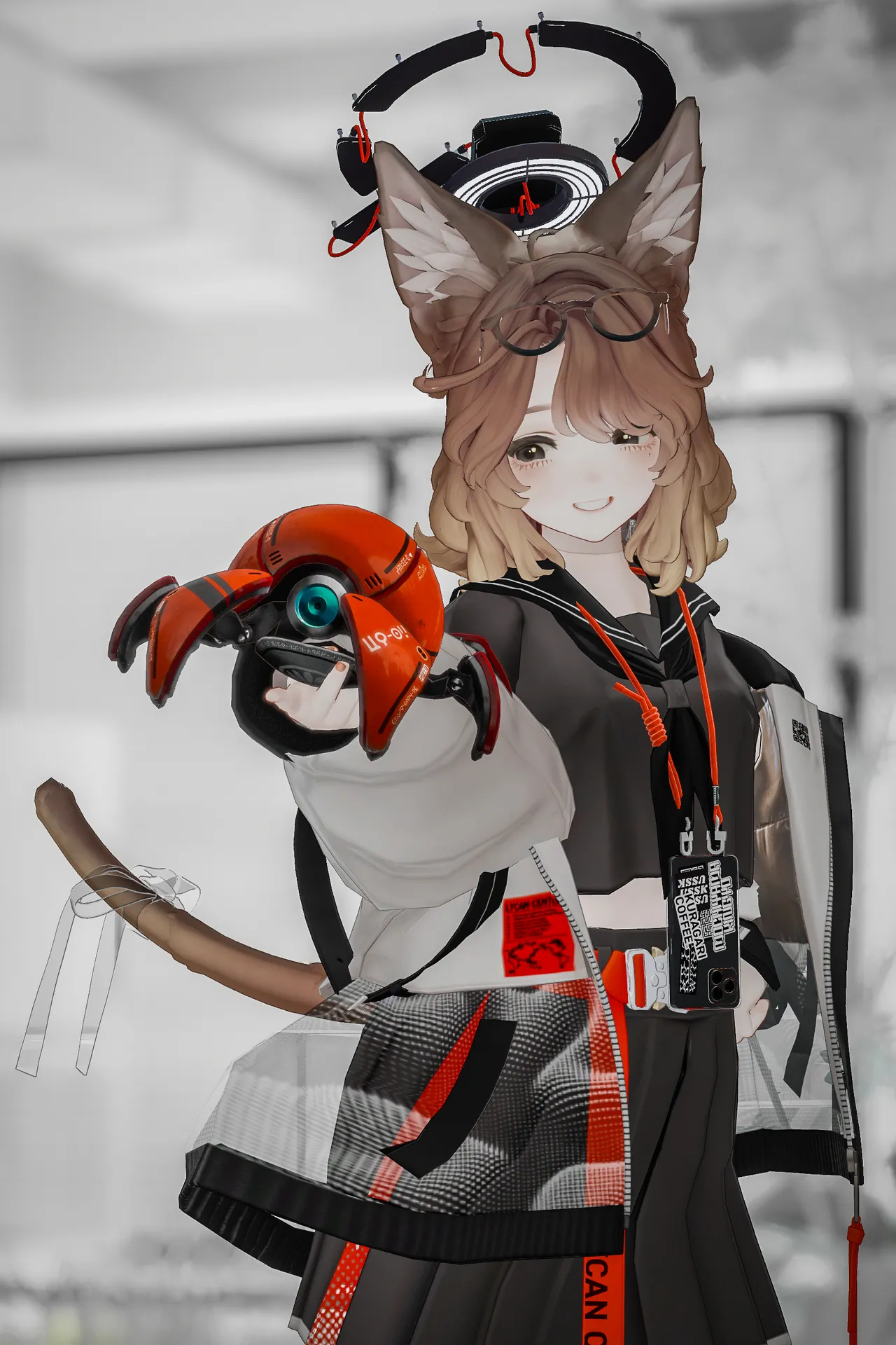 Beroarさん制作のMaryciaちゃんをベースにお気に入りのカラーリングで架空のラボ研究員風の改変をしました。nn洋服やアクセサリーの色味はモノトーンをベースにアクセントカラーとしてオレンジを入れています。nその他、アウターのテクスチャーなどを改変して近未来風の模様や素材感に着目したテクスチャリングを行いました。nまた、所々のパーツを透過素材にすることにより程よい抜け感を表現しています。nn一部非対応のアセットもありますが綺麗にまとめられたのでお気に入りの改変です!