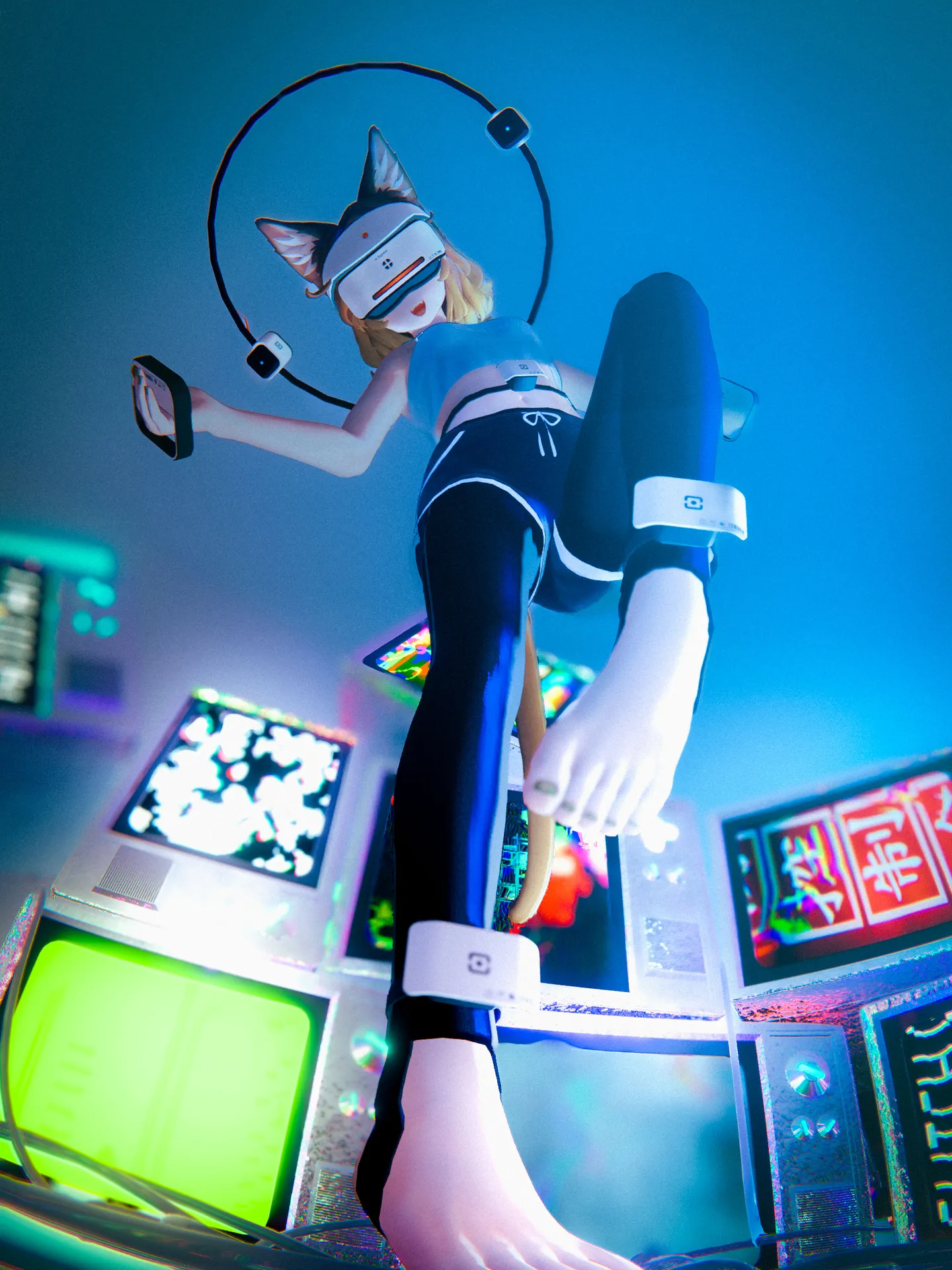 mo4ca最近使っているマリシアちゃんです。nいつかやってみたいと思っていたアバターにHMDを着用させる改変ですね。nnVAliceさんのat2am.を基本的な服装のベースとして、スポーティな感じを演出したかったので、BLVKさんの水着を運動着っぽく見立て、Plus WorksさんのHMDをなんかええ感じに位置調整しました。n少しだけHaritoraの宣材写真をイメージの参考にしました。nn全体のテーマは”お前ら、或いは俺たち”です。VRChatしてるときこんな感じだといいなという願いのもと、HMDを被せました。nnHMDは本来Lapwing用に位置調整されたものですが、最近は非対応服をなんかええ感じに調整する手法がたくさんあって思ったよりも難しくない範囲で出来たと思います。苦戦したのは腰トラ…。また、HMDのマテリアルはマリシア1Pカラーの肌のマテリアル設定をちょいと拝借(プリセット化)して適用しました。輪郭線だけ黒に変更してあります。nこれはHMDの方の作者さんが改変のベースとなるアバターに合わせた雰囲気の改変をされているのを少しだけ参考にさせてもらいました。あまり技術的に肥えていないので全体の雰囲気を合わせるようなことはできないのですが、できないなりのこだわりポイントです。nn履物は悩んだのですが、VRCやってるときに履物履いてないのでやめました。クロックスとか履かせてみたいと思っています。nn使用アセット:n- アバター:Marycia マリシア - オリジナル3Dモデル #Marycia3Dn- VR HMD:in Square - VR Devices(MA対応)n- インナー:「IL MARE」オリジナル3Dモデルn- 服:?27アバター対応? at2am. 【MA対応】