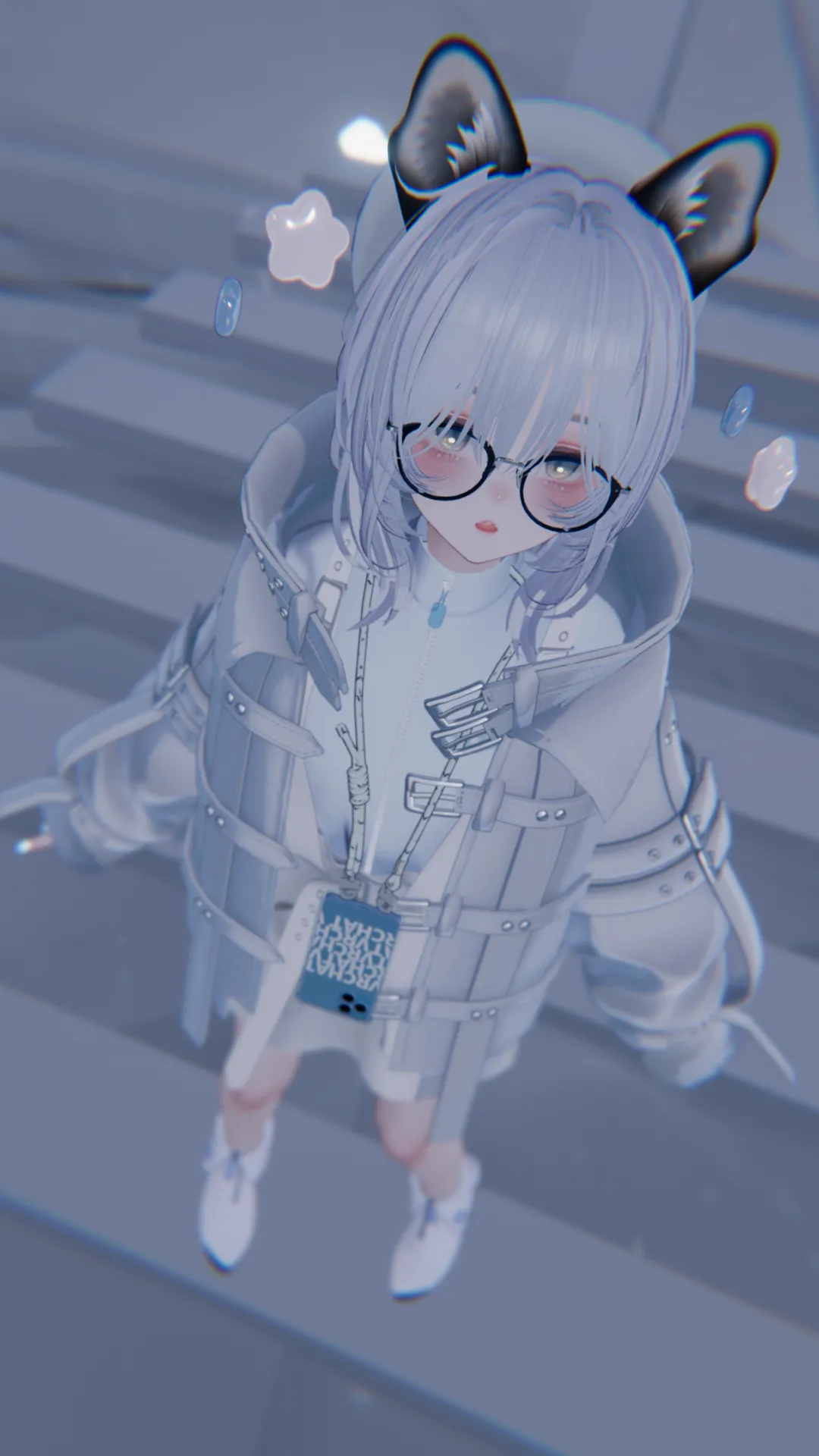 Beroarさん制作のMaryciaちゃんをベースにユキヒョウ改変してみました。n白色を多めに使いアクセントで淡い青色を入れてみました。n前髪は人気のウルフフロートヘアを使って、後ろ髪はロング三つ編みヘアを使って作りました。nマリシアちゃんとてもかわいいので皆さんもぜひいろんな改変してみてください。