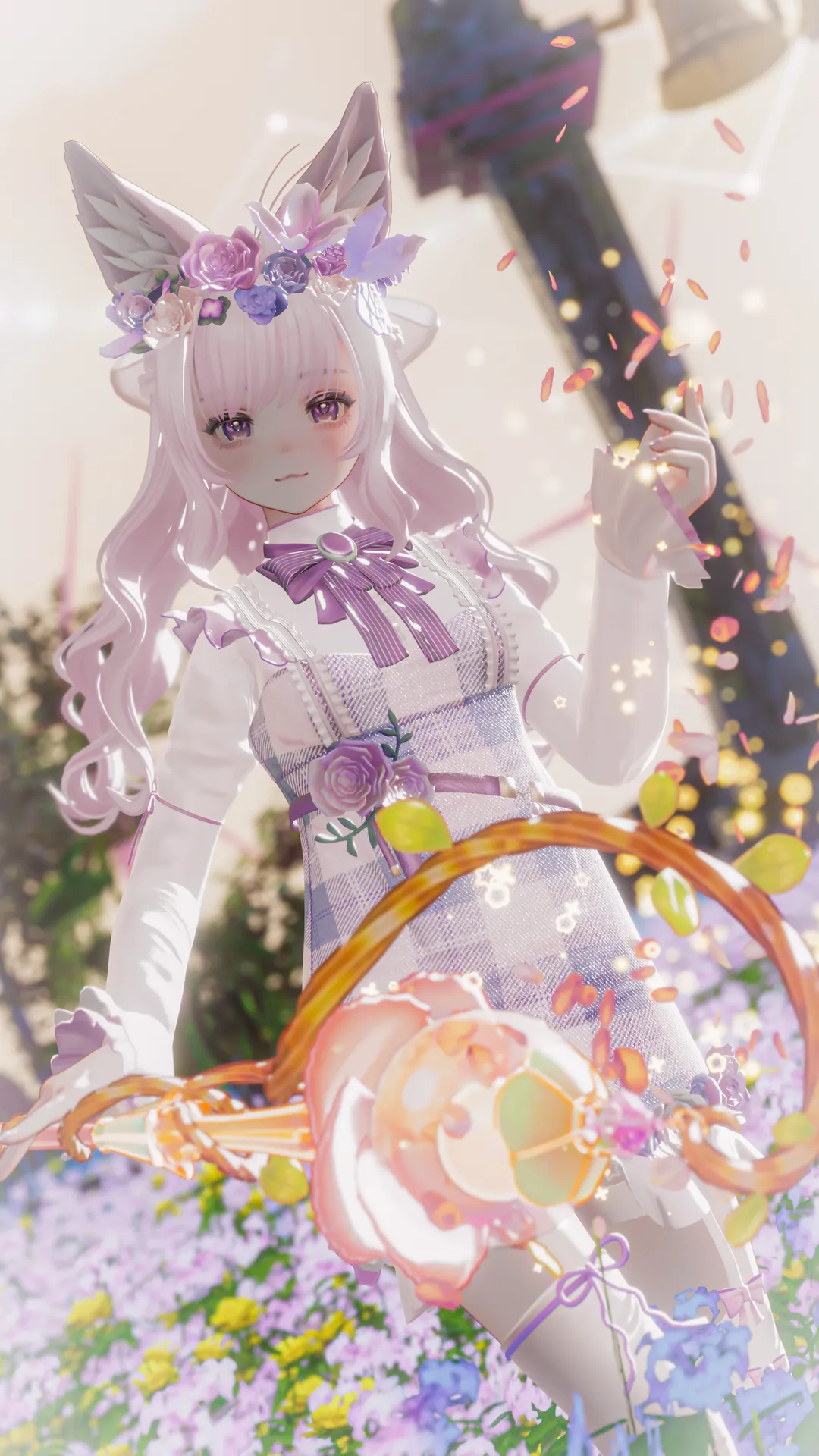 全体的に淡い色になるようまつ毛、髪、瞳、ネイルすべて色合わせしてみましたnnマリシアちゃん、お花との組み合わせがとっても似合う、、、
