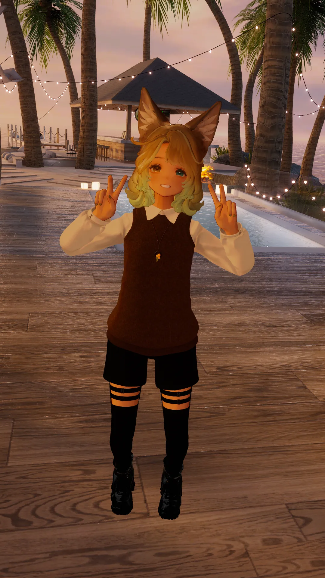 初めてVRChat用に改変しました!nボーイッシュなお洋服、かすかに光るメッシュの髪がお気に入り。nマリシアちゃんのプチ集会でいただいたネックレスもつけてみました!nこれでいろんなところに遊びに行きたい~!