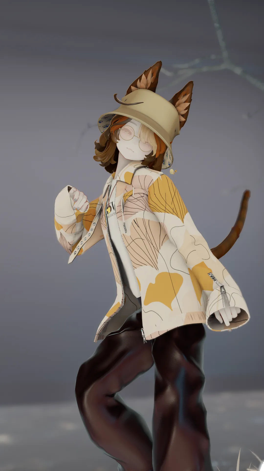 Maryciaちゃんを少しやんちゃでミステリアスに。nnオレンジとダークブラウンのメッシュを入れて三毛猫をイメージして、帽子と衣装でボーイッシュに仕上げました。チャームポイントのアホ毛は可愛いのでそのまま残してます。n帽子からぶら下げているガイコツくんがお気に入りです。nMaryciaちゃんはメガネが似合う!最高!