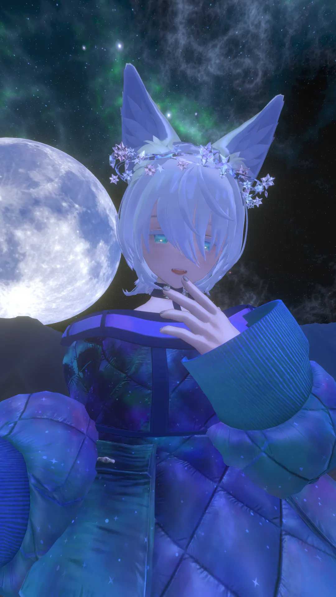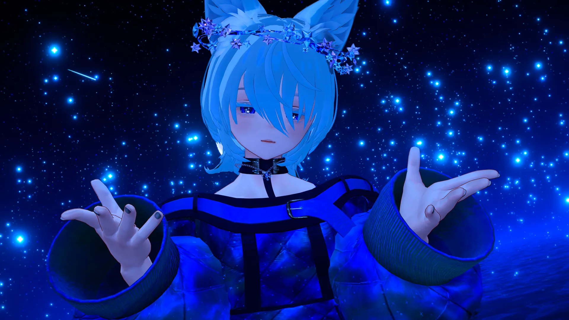 メインのお洋服が星空のように模様が動いてとても素敵です!n星のhaloと惑星のネックレス、星空キラキラの目もポイントです!