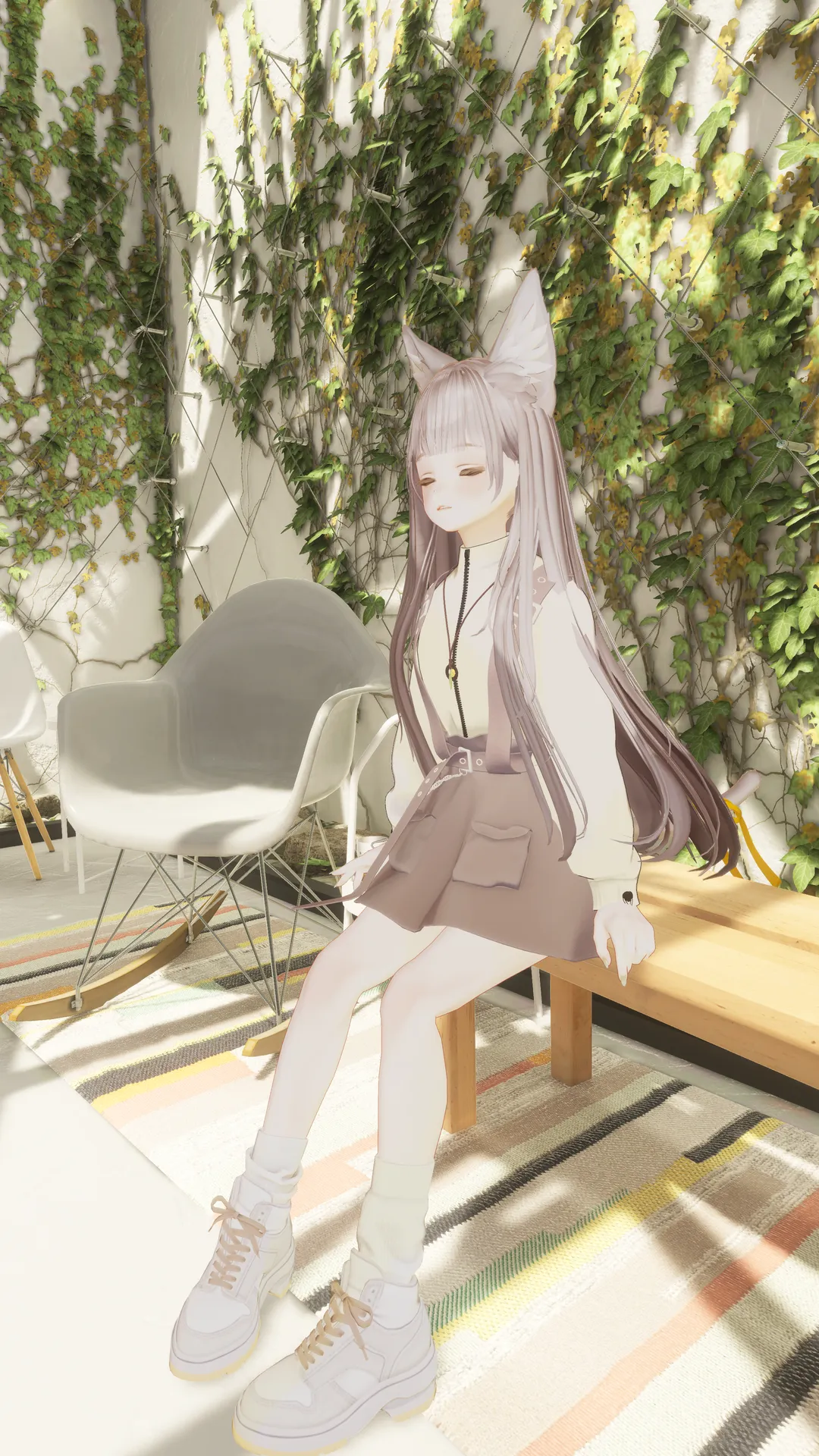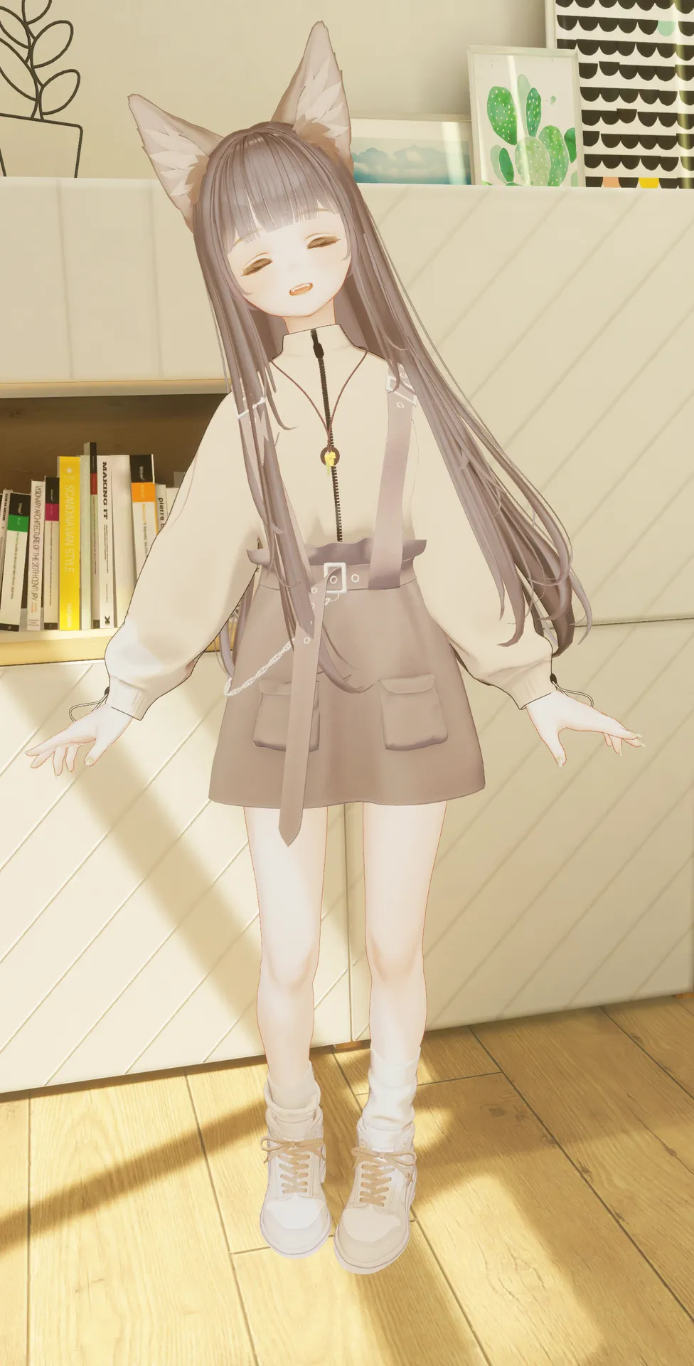 白、ベージュ、黄色をベースに、動きやすそうなコーディネートにしました