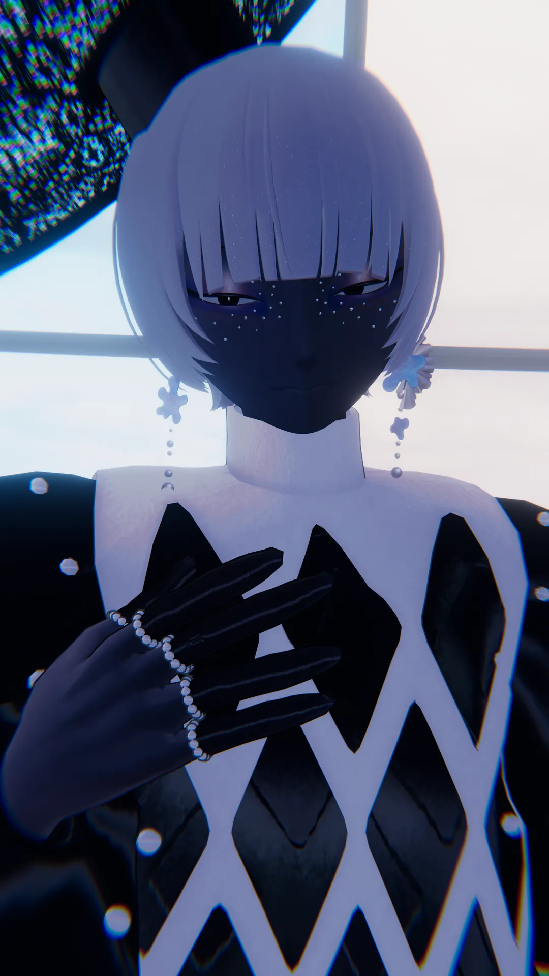 シルエットから指先までかわいいPieDressn袖のデザインに合わせてそばかすパールをつけました