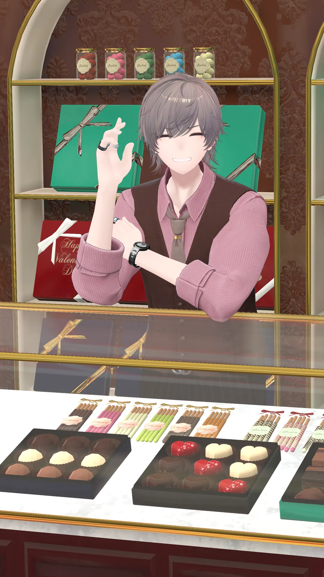 OGRE_Wild Suitをバレンタイン衣装っぽく色改変してみました。n3枚目のワールドはこちら。nhttps://vrchat.com/home/launch?worldId=wrld_40939cd6-d942-4ee2-a78b-ecd1b195f3fa