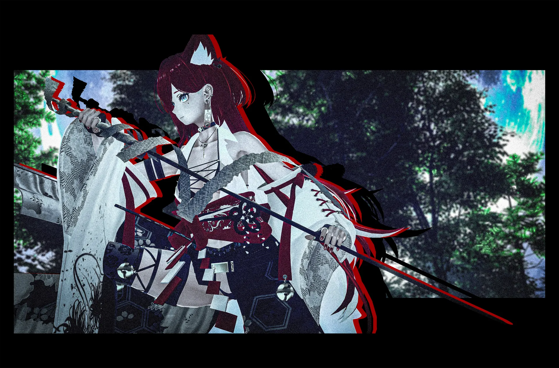 ラシュ―シャをベースに赤色が目立つような露出の多い侍を作りました。セクシーさとカッコよさを両立できていたら良いなと思います。nC1のメッシュを削り、ビキニを着せ、現代風和装のヒラヒラを着せて作りました。n