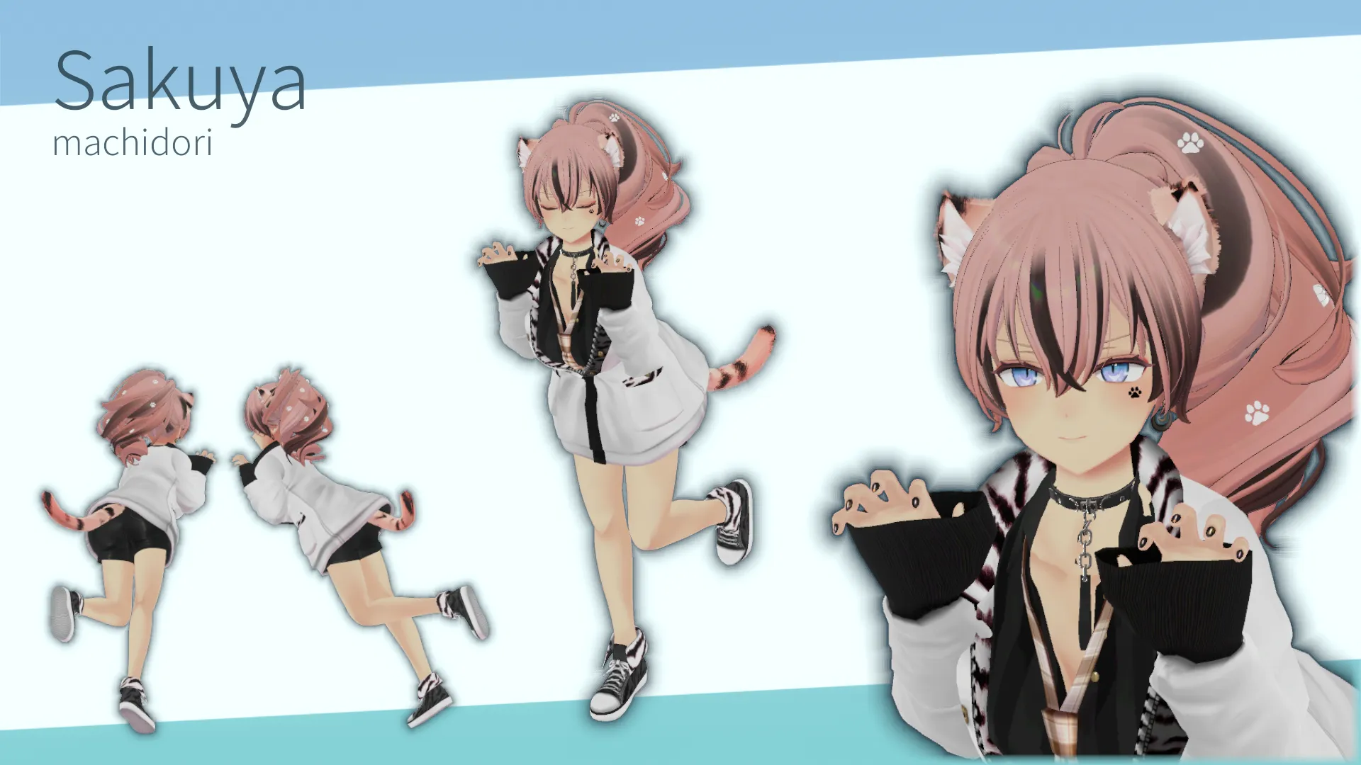 ワタリノ様のサクヤちゃんです。n基本服が好きなのでボディはそのままに、髪形と表情をいじっています。nリオ君を犬ベースで遊んでいるので、サクヤちゃんは猫ベースにしています。n元の尻尾と耳に併せて髪の毛の色をいじっているのがこだわりです。n・髪の毛にヘアピアスっぽく肉球を散りばめるn・目元にも肉球をワンポイントにn基本服が白いから綺麗目なギャルに見えてかわいい????