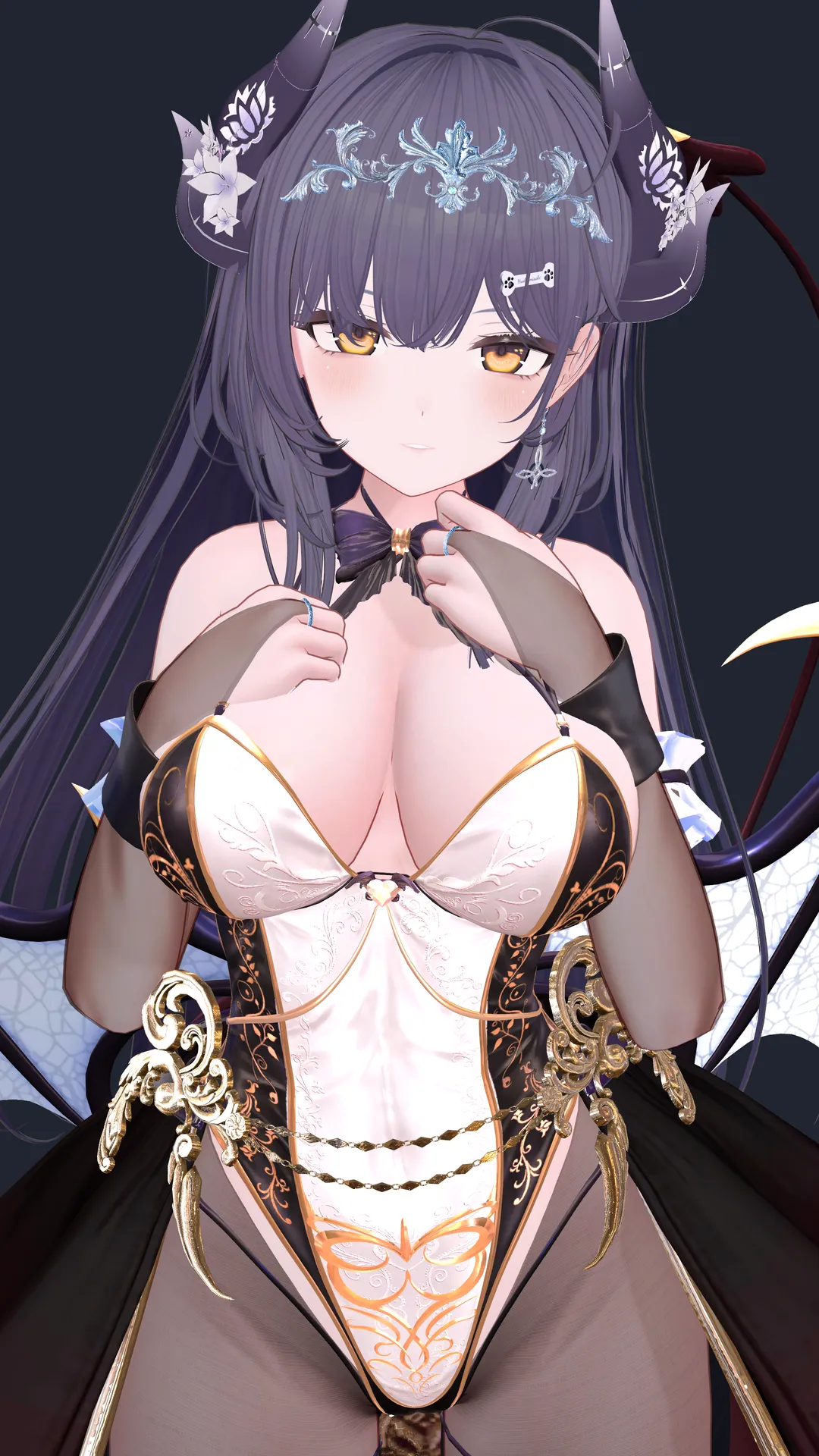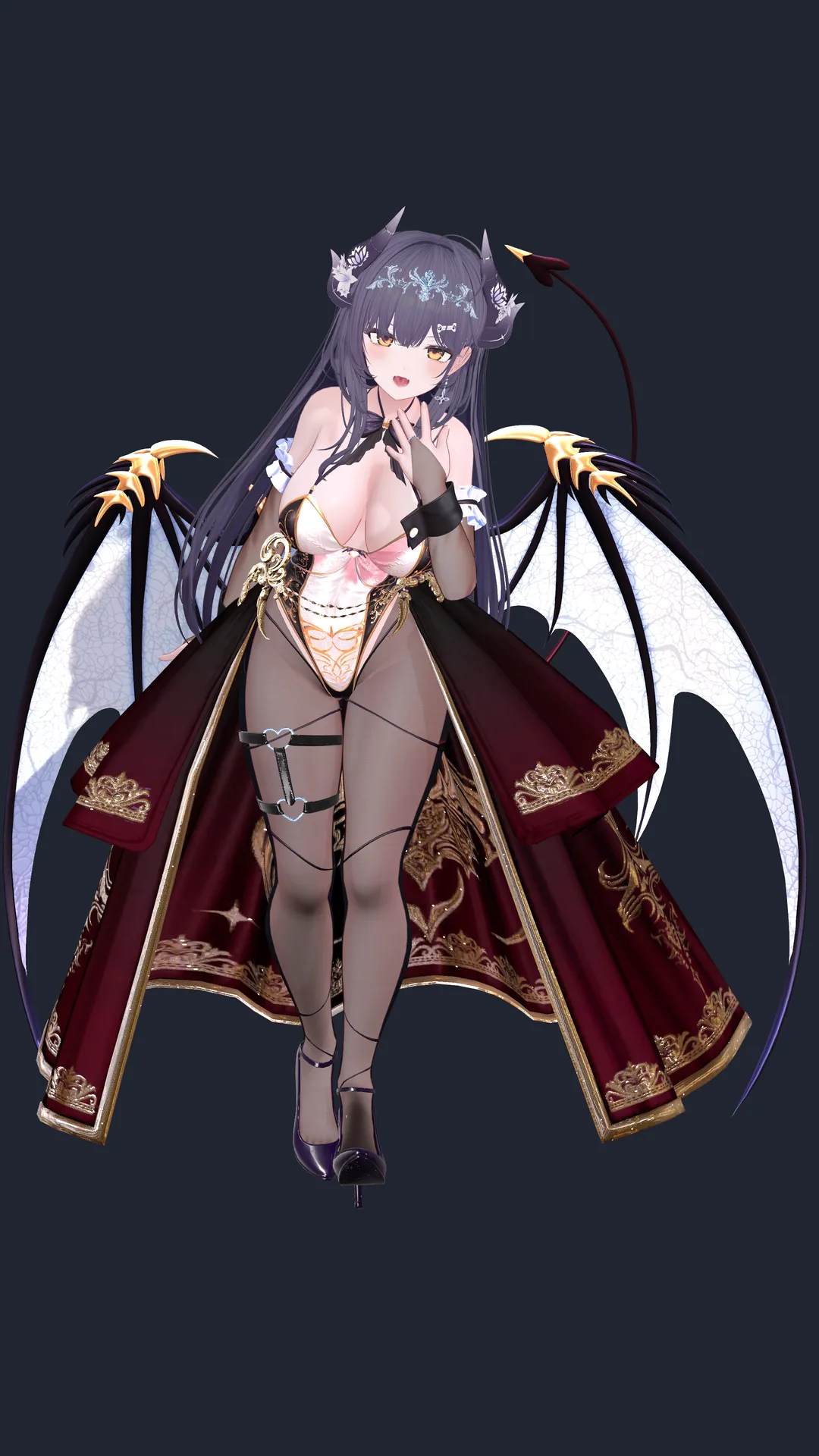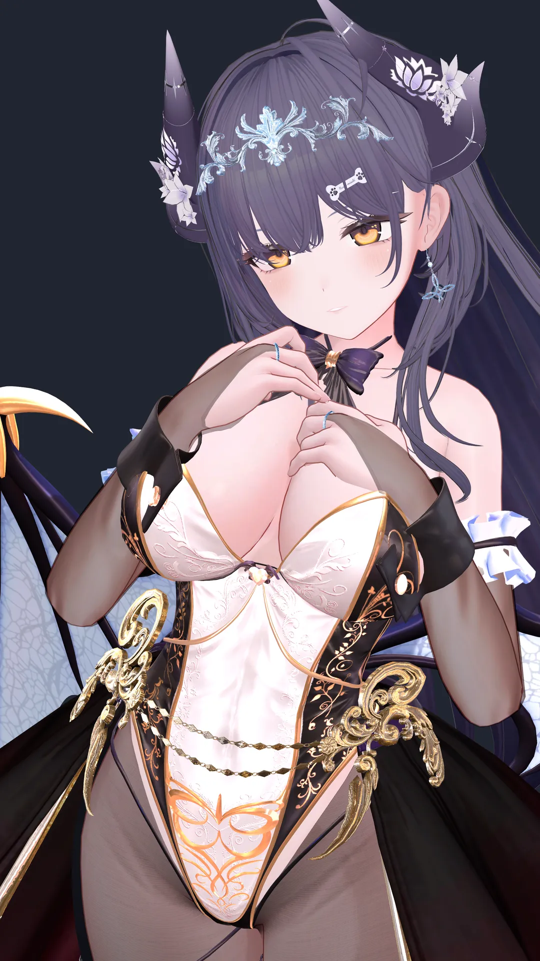 はすの字Neon Maru 様の『Bunny Succubus』をベースに色んな衣装のパーツを足して改変しました!n※Body、Head共に純ミルティナちゃんです。nn肌色が多いとコントラスト差が付きにくいので、所々シースルーになっているところがポイント。n腰回りのアクセやストッキングは HB_shop 様の『妖花』を使用しています。n使用するもの以外は『editorOnly』にし、テクスチャを50%圧縮するとVRChatでも50MB以下になる点もお勧めです。n良かったら参考にしてもらえると嬉しいです。nn【構成】nn髪型 :Li-ne 様の『スウィート?シュネーバレン』nメイク:nekonoteArtWorks 様の『【ミルティナ】肌・眼テクスチャ素材/ Milltina Skin/Eye texture #例のテクスチャ』nアイテクスチャ:自作n角:Shuya 様の『「FlosLepos」 Horns / 靈花の角』n服メイン:Neon Maru 様の『Bunny Succubus』n服アクセ: HB_shop 様の『妖花』nn※顔シェイプキーをotonaを100にしています!n