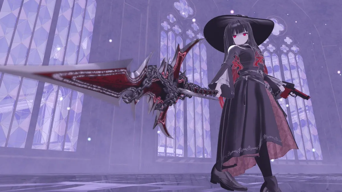 赤と黒をテーマに闇の執行人として仕上げました。nトリスタさんの槍をメインに、片手に銃を持たせた遠近両方いけるタイプです。nミルティナちゃんの赤目に会うようにカラーもこだわりました。