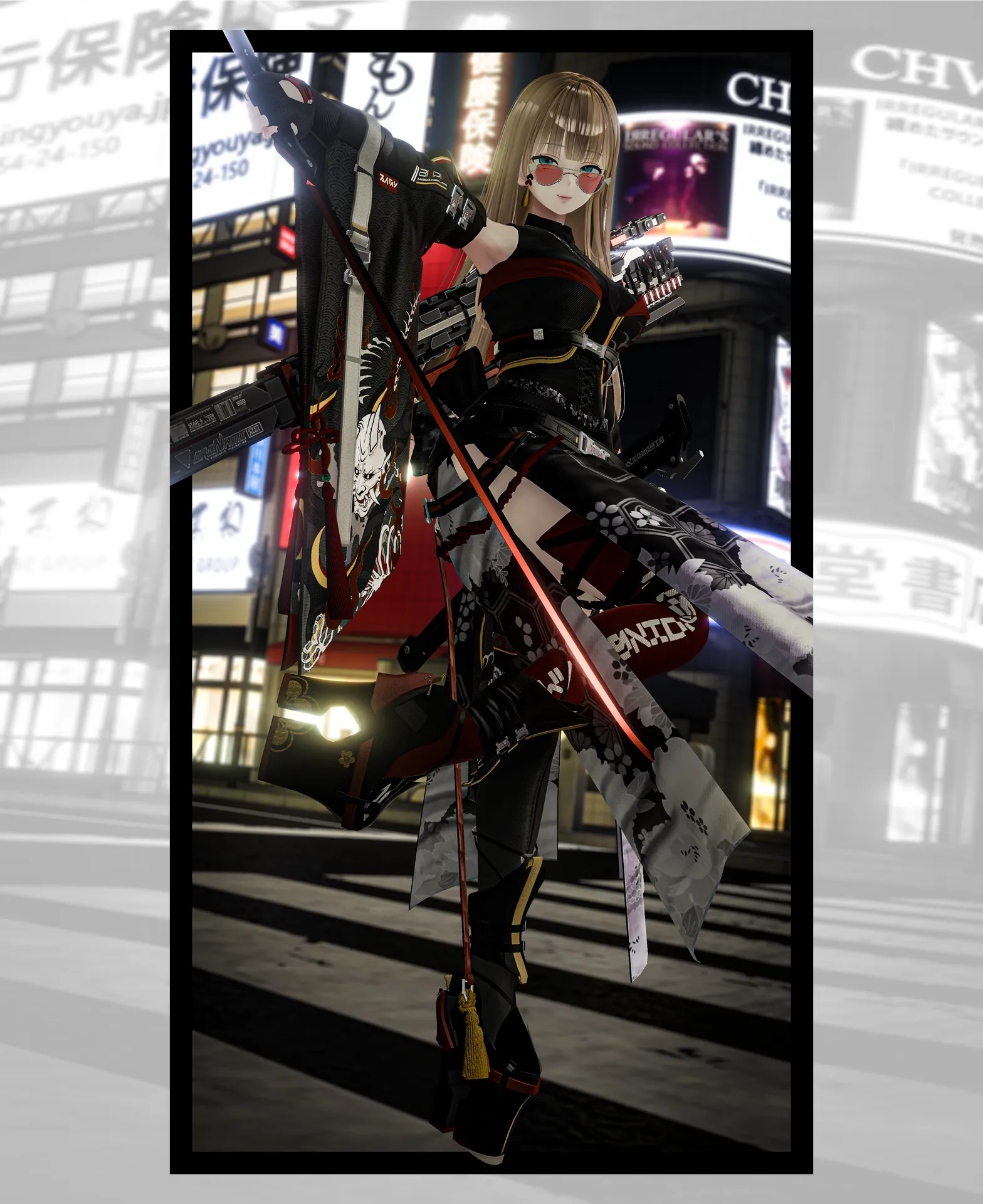 森羅をベースに赤色が目立つような近未来の侍を作りました。