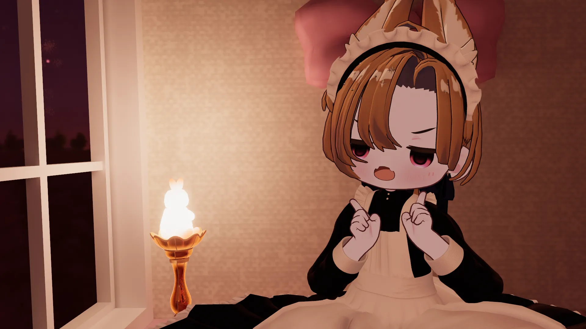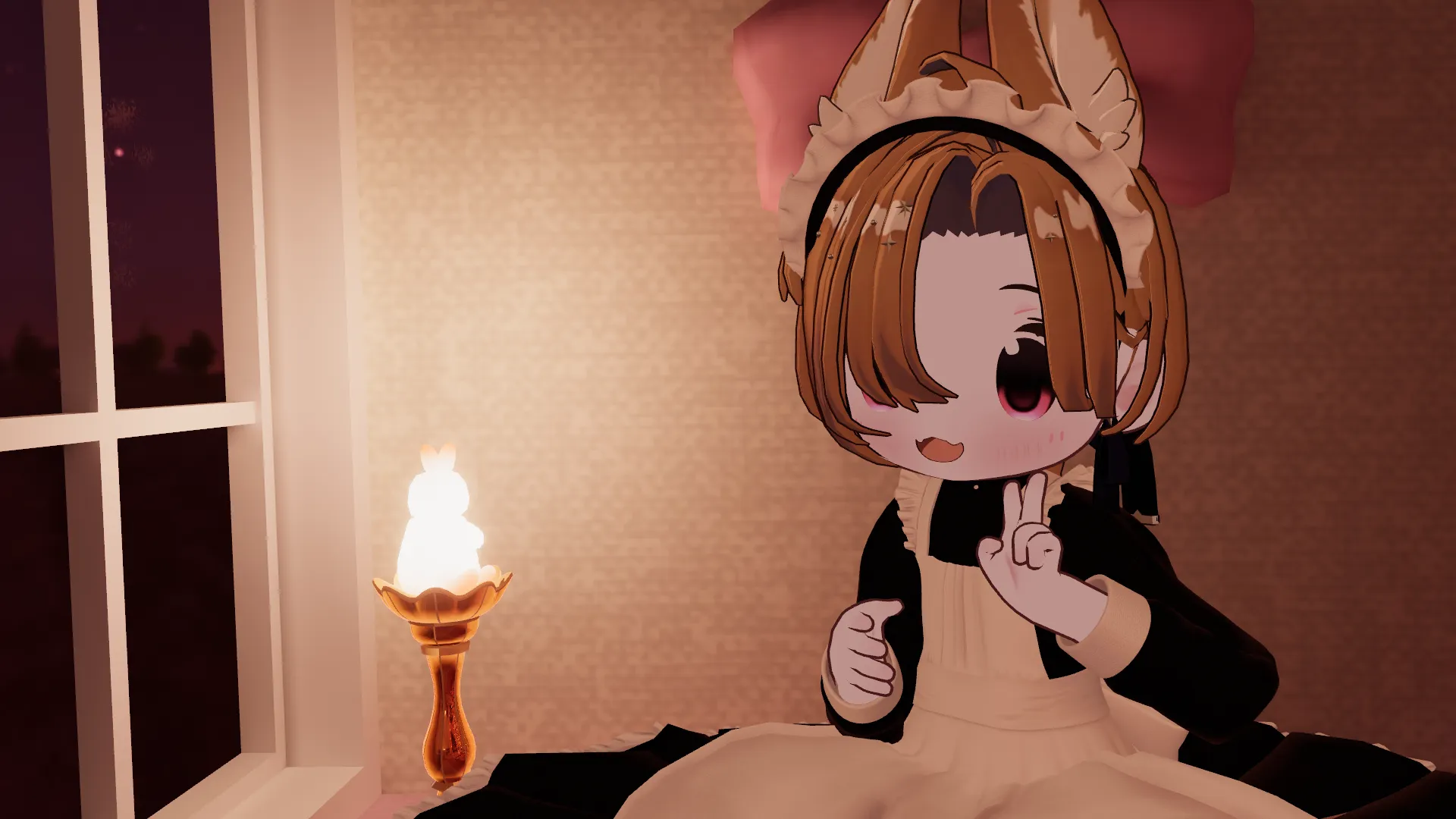 最初のアバターを購入したころから欲しかった一着でした。nまさかこんなに買ってからお迎えするとは…nフルセット販売、とてもありがたいです(*'▽')?n髪型と合う、うさぎさんのお部屋を偶然見つけられてよかった(*?▽?*)n