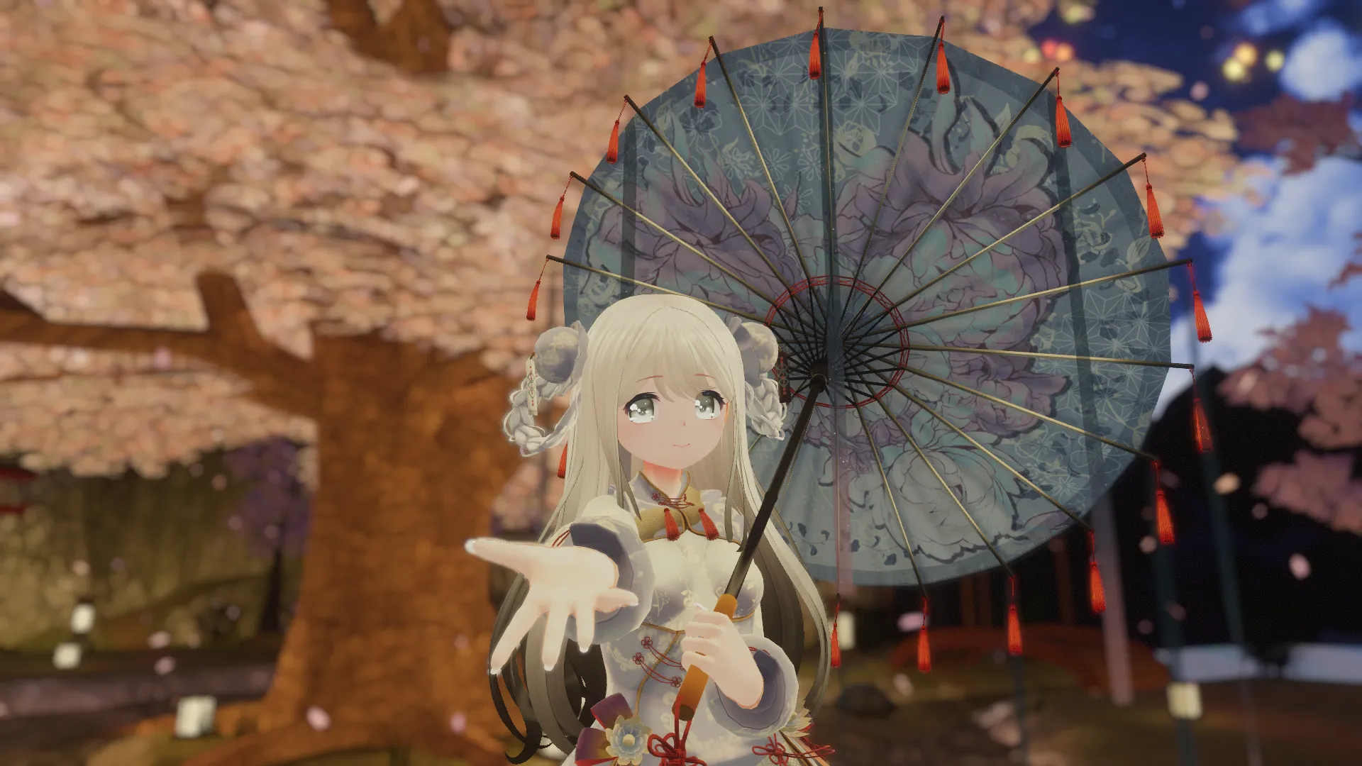 月華に浮かぶ庭園で、銀色の団子髷が微風に揺れる。nn「一緒に行こうか?」
