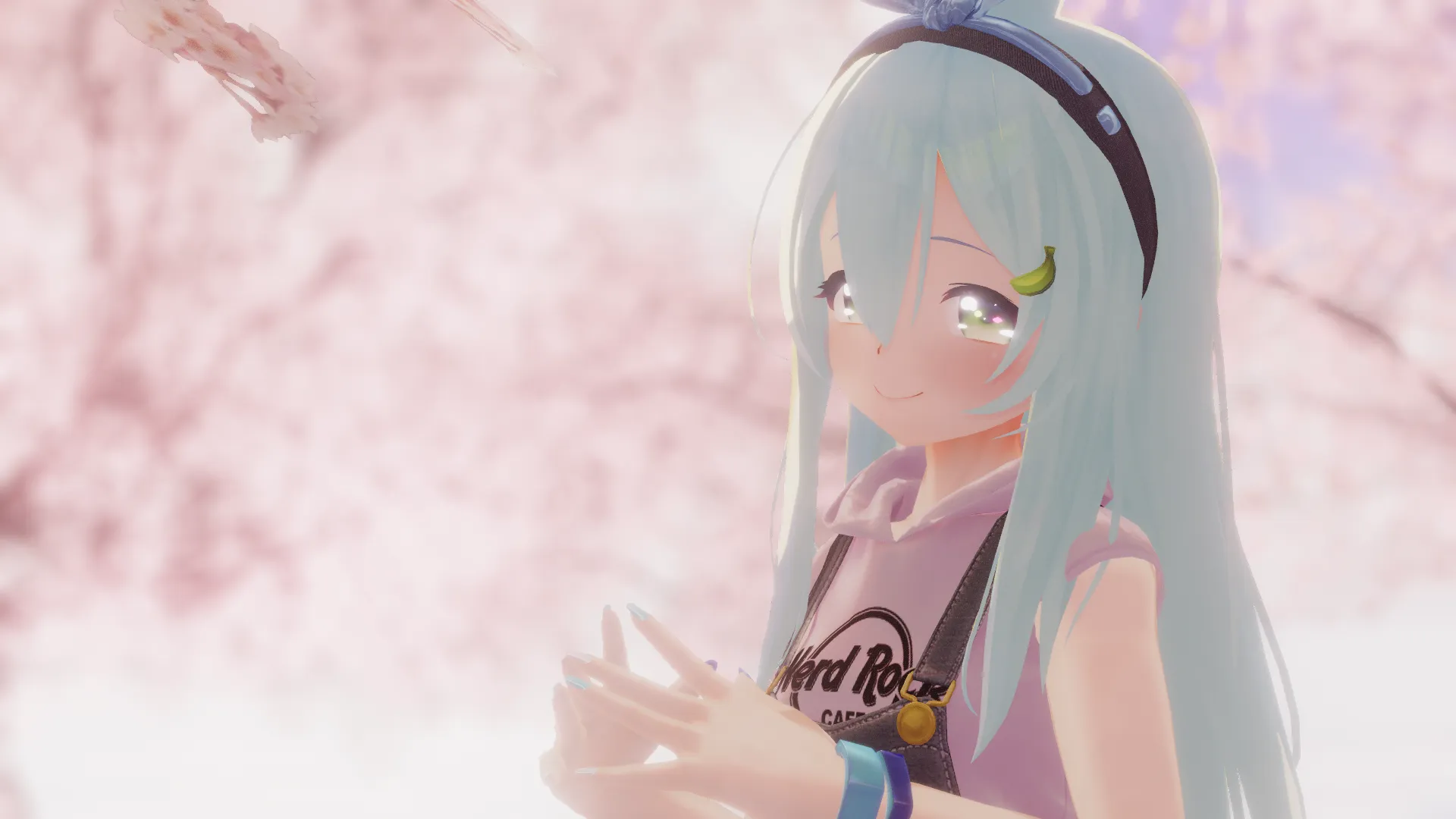 ばななちゃんアップデート記念??n元の髪型も服も好きすぎるので色とTシャツ柄変更のみ!n桜色ともマッチしてご機嫌ばななちゃん
