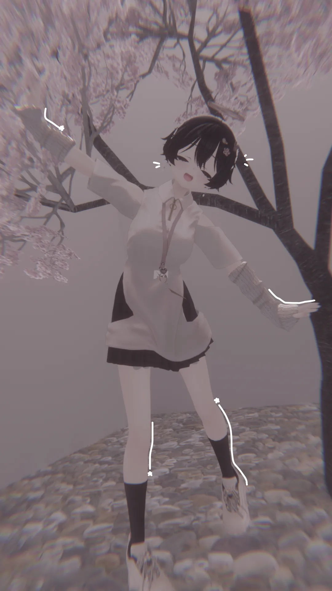 びしょぬれのしずくさんを使った改変です??nお花イメージの改変にしたかったのでアクセサリーでお花をちりばめました?nあと、にこにこフェイスマジックを使って元の顔のアニメーションを残したまま眠たそうな雰囲気にしてみました!n個人的な好みですが、真っ黒なお目々が大好きです
