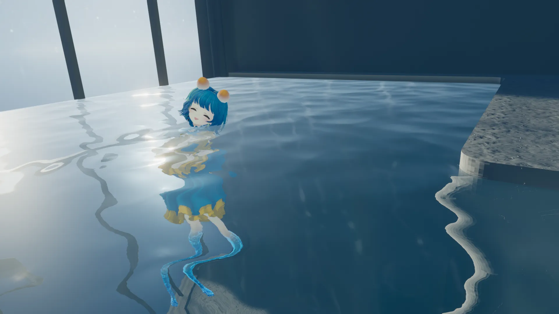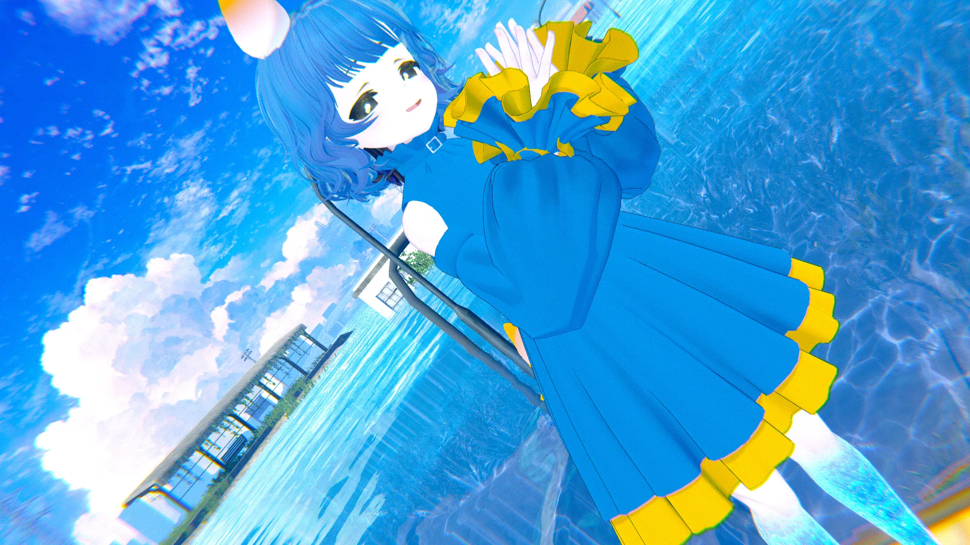 メロトロンちゃんになります。アバターフォトコンありがとうございます。nnこの度縁がありまして己自身の好きなウミウシを模した改変をさせていただきました。n参考にしたのはアオウミウシというウミウシになります。nnお気に入りの部分はずっと着せたかったお洋服をウミウシの体の色に表現できたことです。n髪のインナーカラーも同じような形で表現しました。nn(頭の猫ちゃんはゲーム中ずっとついてくれてて己にとって大切なものだったので外せませんでした。)