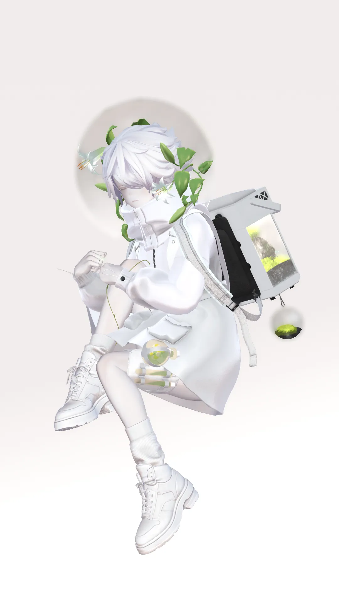 白ベースで緑が映えるマリシアちゃんですn頭の装飾は、猫耳、ガラス球、フードの三種類に切り替えられますn