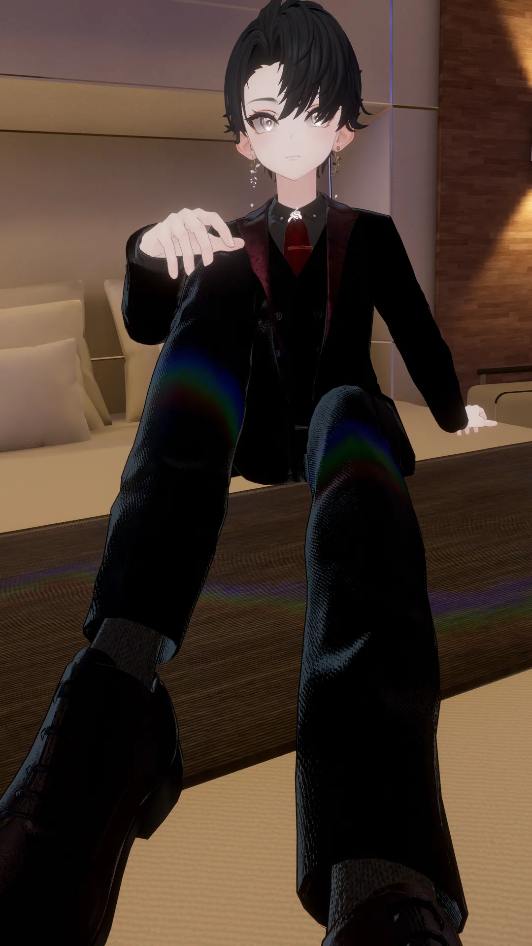 今年の1月に改変してから、お気に入りになりこの姿で色々なところへ行っております。n巳年なのと、フレンドさんのモチーフに寄せてみました(*´?`*)nn◆ピークドラペルスーツnUnity上で色を少し変えています。n◇花びらがひらひら落ちるパーティクル付きピアス - Lirra flower piercingn元々は白いお花がついていますが、今回はちょっと綺麗目にしたかったので外しております。nただ、パーティクルは残してあるので、動くとひらひらっと花が舞います?゛n