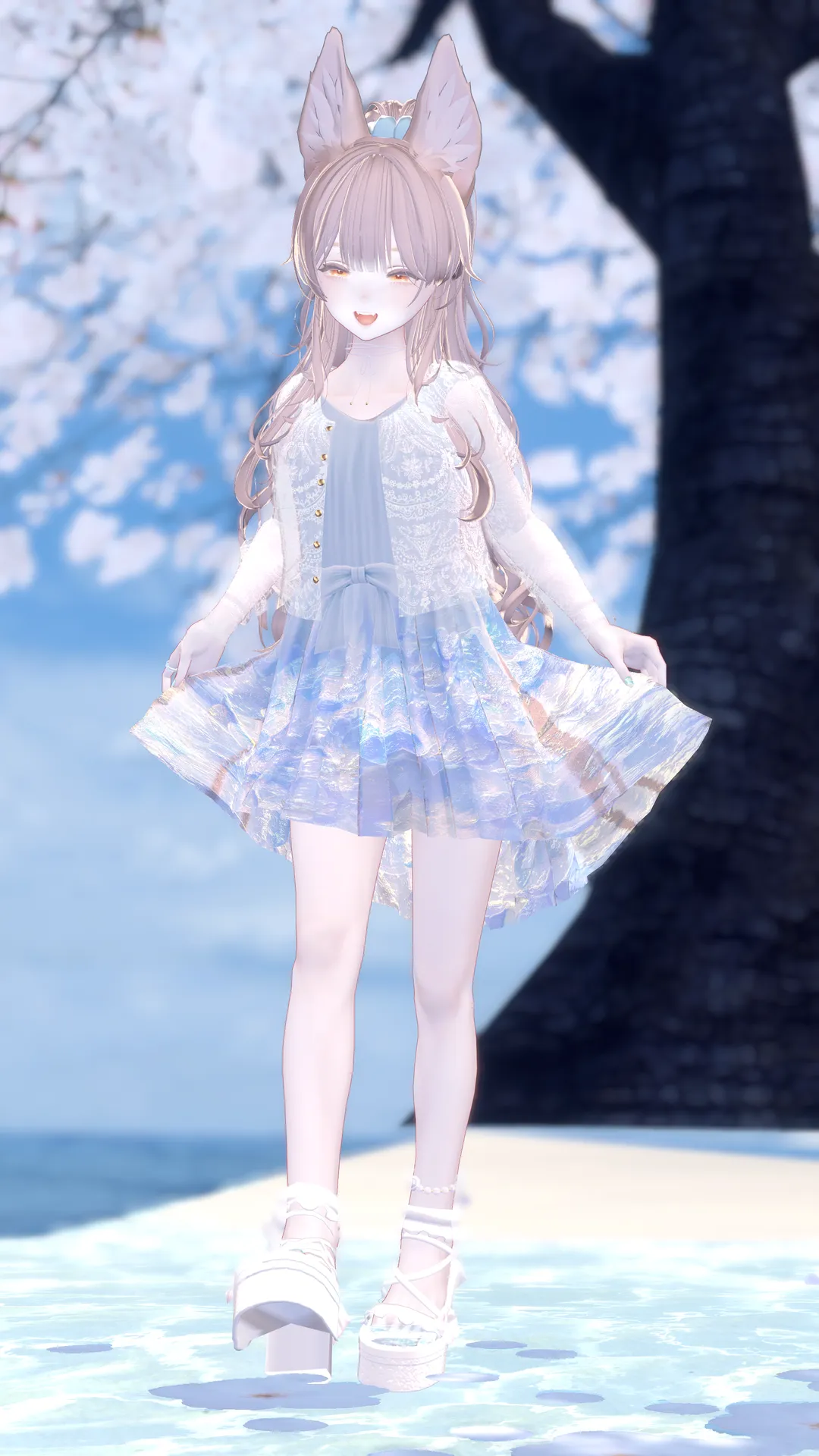 anzyuちゃんのお洋服を着て撮りたくて、念願の改変記念???n雨が止んだ後、こうだったらいいなという想いで撮影しました。nnこちらのワンピース、春らしくてとっても可愛いんですーーー?n裾にはレースがあしらわれていて、ほんのりシースルーが涼しげで上着を脱げば夏にもピッタリ!nコラボ商品のテクスチャーも販売されていたのでさっそく入れてみました。nこちらも上品でとっても美しい…!!改変の幅が広がって撮影もめちゃくちゃ楽しかったです♪