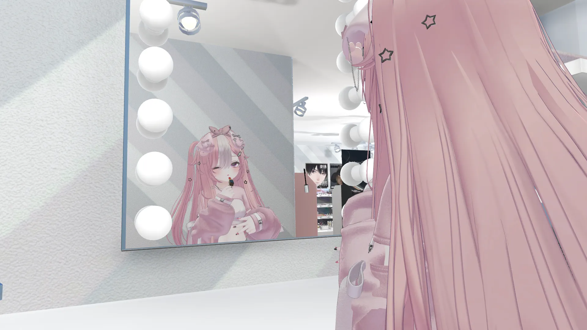 ピンク改変にハマっていた時に作りました!n全体をピンク色で固めて可愛さを前面に出しつつ、髪の真ん中だけをアクセントで白色に変えています。n普段使いやV睡の際にも使いやすくてお気に入りです。n眼鏡のオンオフで印象がガラッと変わるのと、ピンクなのにタバコが似合うところがアピールポイントです!