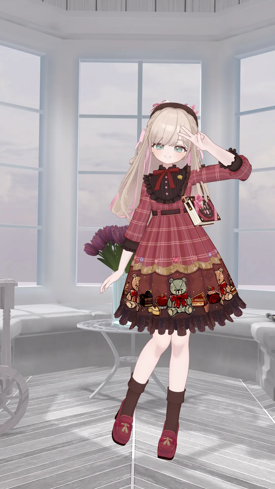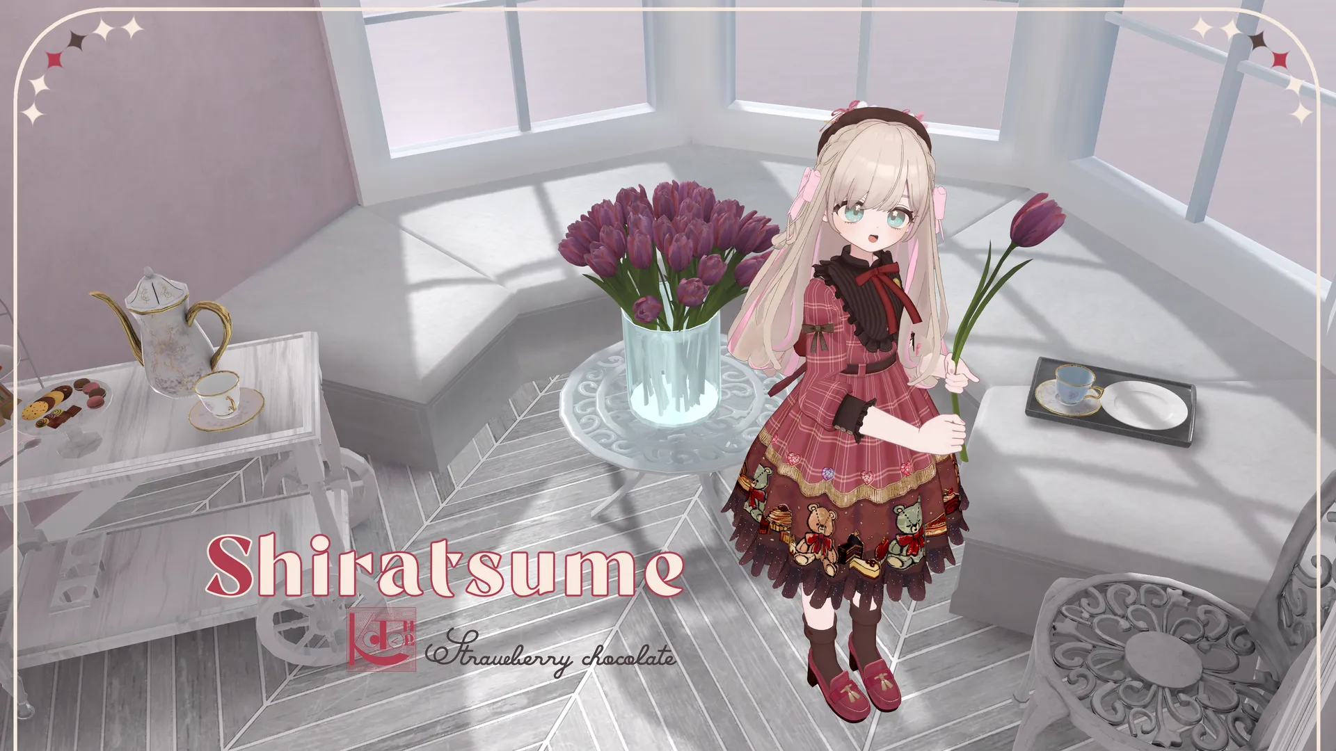ことねお人形さんみたいな容姿なので1058martさんの衣装が絶対似合うと思いクラシカルドールな改変しました。nn1058martさんのshop内の衣装はテクスチャを改変する際に使用してもいい規約がありますので、nショコラロリータのテクスチャから熊さんイラストをアンティークワンピースに流用しnテクスチャカラーを改変等しました!楽しいので他ももっとやっていきたいってなりました。デザインが素敵すぎる。n後ろ髪は今回キプフェル用のを所持していた為、強引に頑張って合わせています・・・!n公式でしろつめ用がありますのでそちらを使った方が全然いいと思いますのでリンクはしらつめ用を貼らせて頂いてます。nn自作アイテクスチャも淡い感じになるように色改変してます。nファイル内にclipstudio形式のデータがあり、グラデーションマップのレイヤーを置いています。nそちらで色の指定をすると簡単に色々な色の組み合わせが楽しめると思います!nnmemo---nアンティークワンピースはpoiyomiマテリアルonlyになっています。nしらつめのアナザーカラーの衣装のマテリアルを参考にliltoon手動で真似て変えています。nまた、色々な子に着せれるようにシェイプキーなどたくさんあります。n私が今回した操作を簡単に書いておきます。nWE_AntiqueOnePを使用⇒ 全体を0.95サイズに変えてから⇒ 下記のワンピースシェイプキーを変更してます。nneck_Expand 30/UpArm_Expand 20/Arm_Higher 73/Arm_Expand 50/Sleeeve_Expand 90nしらつめ素体は隠れる部分は大体絞ってます。n今回後ろ髪がロングなので結構大胆に消してますので、貫通する場合は色々変えてみてください。nnnnアバター□https://harunopupu.booth.pm/items/6831821nアイテクスチャ□https://booth.pm/ja/items/6846953n髪型 前髪□デフォルトn髪型 後髪□https://booth.pm/ja/items/6567257nワンピース□https://booth.pm/ja/items/3636099n鞄□https://booth.pm/ja/items/6532895n帽子□https://minuetdoll.booth.pm/items/6363487n靴□https://booth.pm/ja/items/6061018