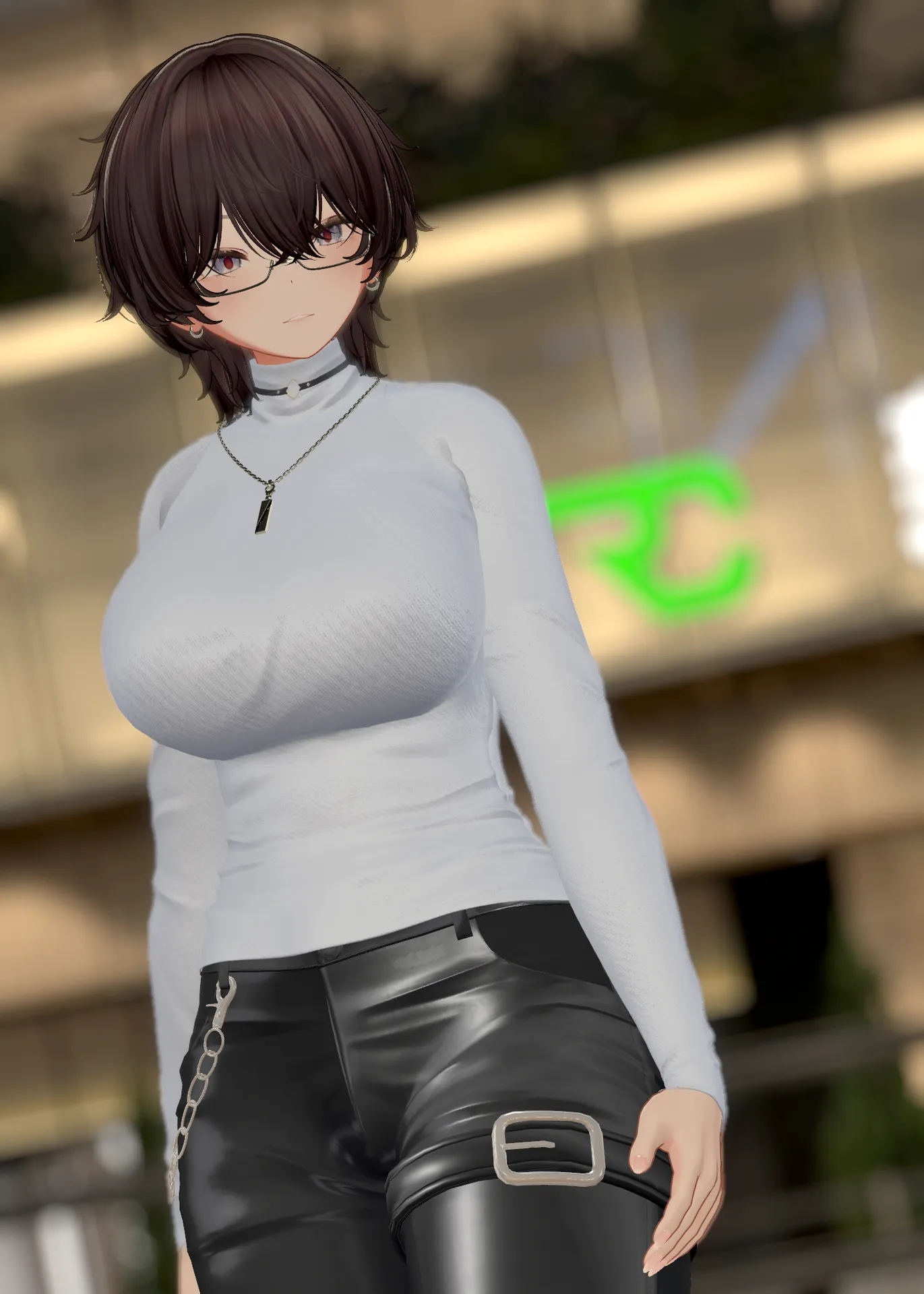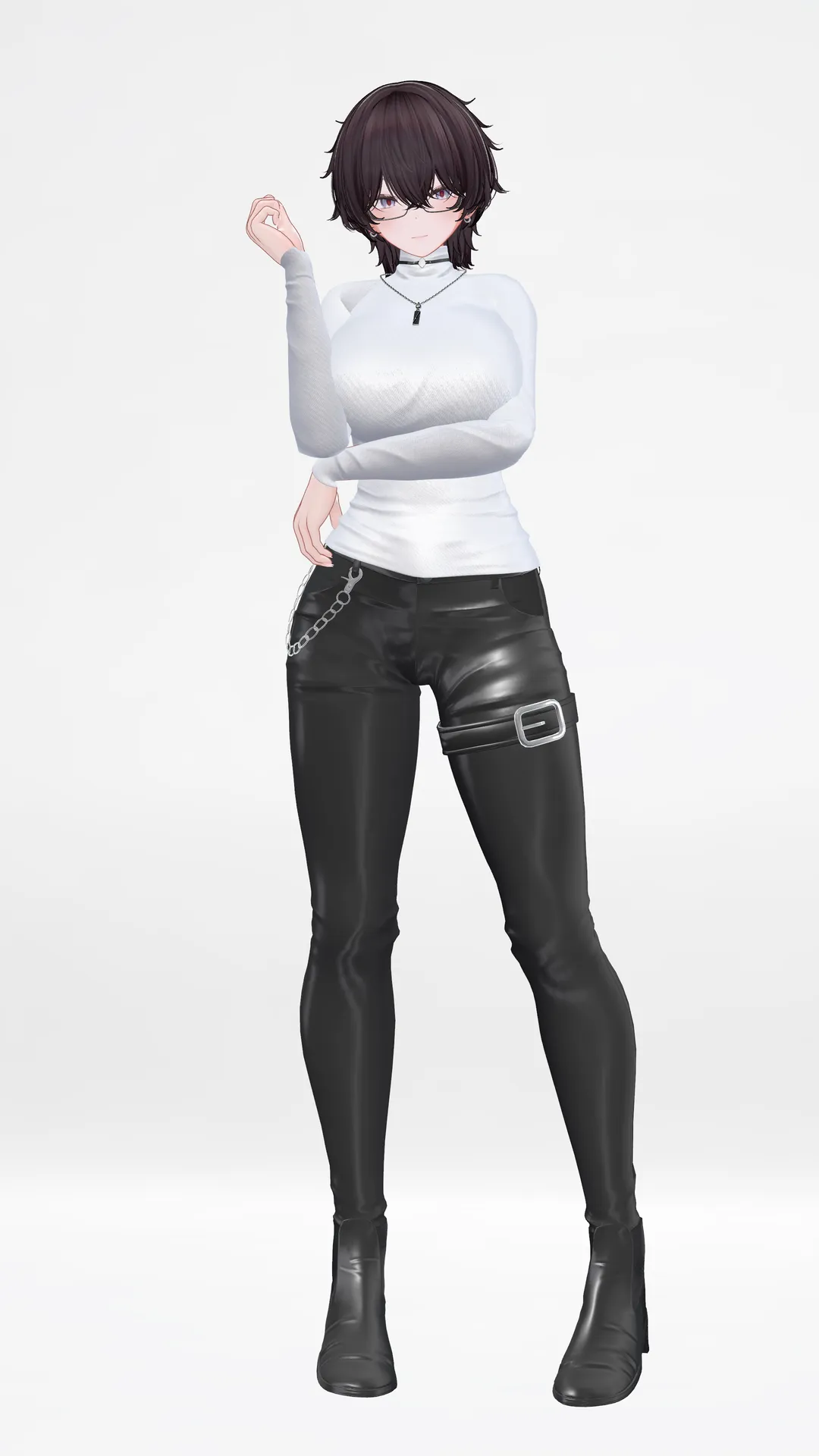 scud9434/スカッドMilltinaでクールビューティーな高身長お姉さんをn目指して改変しましたnn・改変用衣装 アクセサリー等 ※「」内はショップ名記載nアバター:Milltina「DOLOZ art」nヘアスタイル:無造作ショートネオウルフ Ver.2「GLAY Unknown」n衣装:SeeMe「Luca」n 1.トップス 2.ボトムス 3.チョーカー 4.チェーンn 5.レッグベルト 6.シューズnアクセサリ:アンダーリム眼鏡「くま屋」n Ear accessory 03「flow4ge」n Neck accessory 06「flow4ge」n Simple Gel Nail「てんぱすおおもり」nn・使用テクスチャnメイク:Milltina_eye&maketexture「hatimitu_milk_shop」nアイ:Obje Eye Textures「RE: シン's Shop」nボディ:Lueur Body 「REFLECT by EXTENSION」n舌:Milltina Tooth&Tongue texture「Konoyo」nn撮影ワールド:VRC 新宿駅n Tiny Life Room