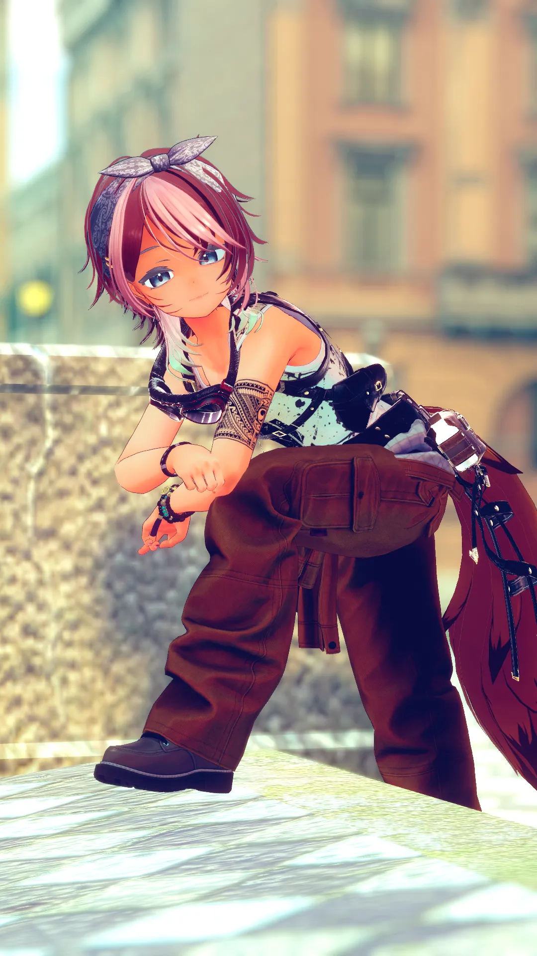 毎度エプリちゃんベースn今回はロボ系アニメに出てきそうな(腕利き?)メカニックをイメージして改変n爽やかな夏をスタイリッシュパンクな感じに仕上げました。nnメインコーデは珍飯亭のツナギをテクスチャ改変。n腰回りのアクセサリーをシキ君の衣装を組み合わせました。