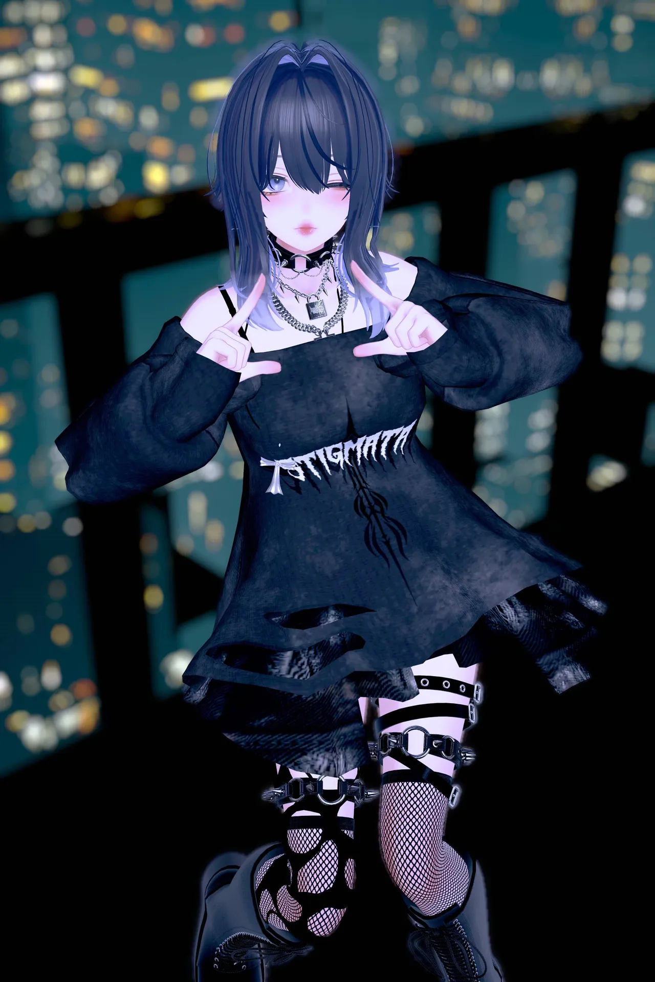 パンクでクール、リアルテイストな森羅ちゃんです。nネックレスと太もものガーター、網タイツはSUBCULTURE PUNK COLLECTIONのものを使っています。nn※衣装のウエストやおしり周辺はMA Scale Adjusterでしぼってあります。