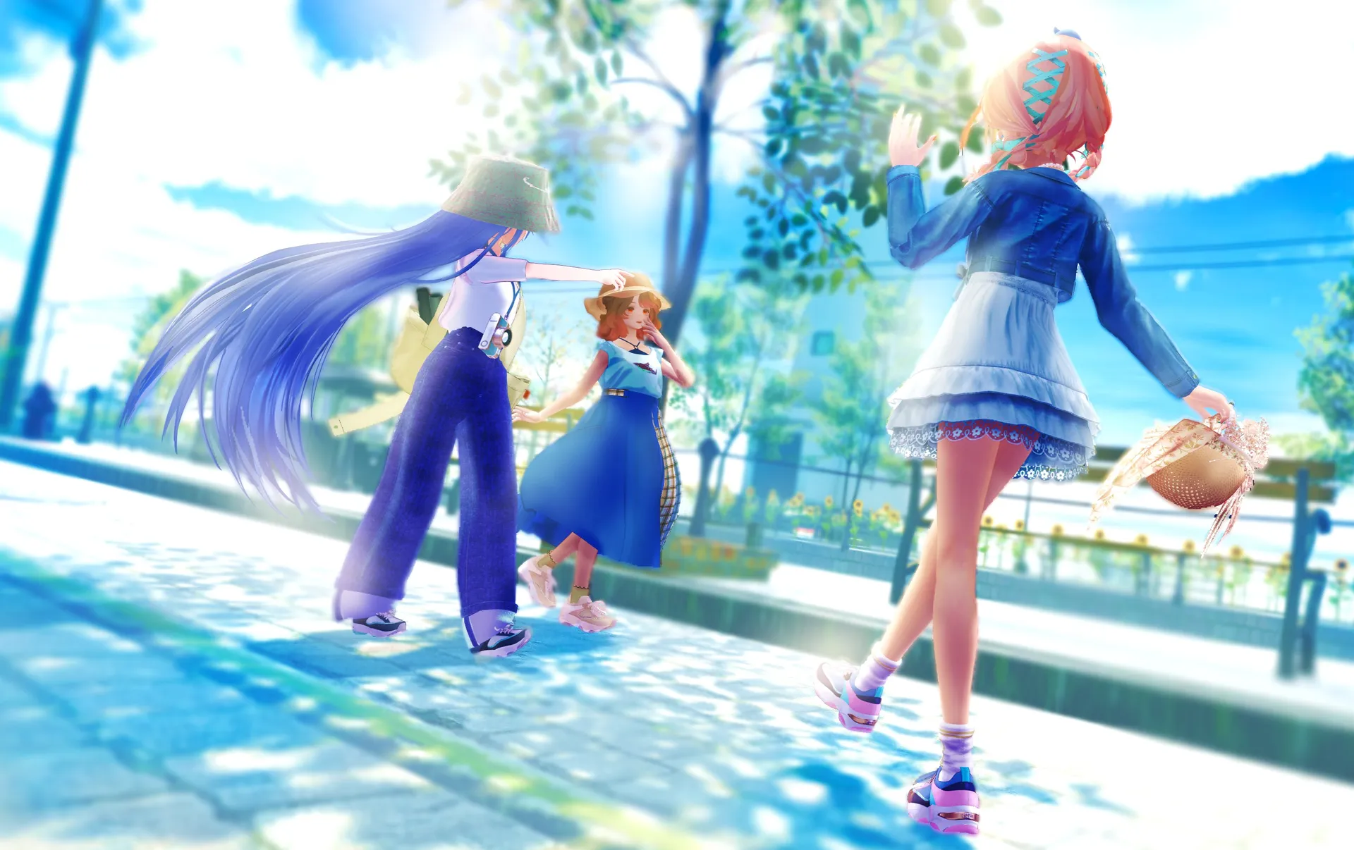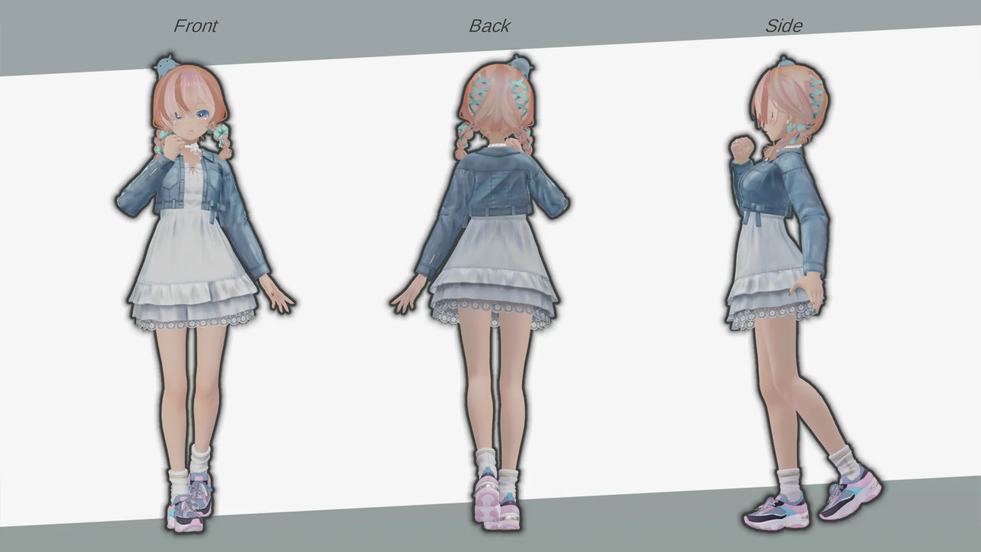 やnフレンドとコーデを合わせて組みました!nn撮影worldnCharlotte's Sunflower Island~ひまわり咲く癒しの港町- Created by: Charlotte(シャル)nhttps://vrchat.com/home/launch?worldId=wrld_d8b48301-f025-48c9-9105-a2c84e08faa0nThe Avatar Studio | Avatown - Created by: MetaCreatorsTYOnhttps://vrchat.com/home/launch?worldId=wrld_96460268-8c89-438f-b8f2-2ea2f1ed1ce7nnn髪型:NecoMaid対応n・QuQu_リボンおさげ nネックレスn・Celeste Garter - ガーターリングアクセサリー【VRChat向け】 - Re.works n洋服:マヌカ対応n・AFW【14アバター対応】 - Ganger n靴下:森羅対応n・【12体対応】デニムワンピース - Natelier -ナトリエ-n靴:ルーナリット対応n・ひゅうがなつみかんコラボ☆異素材コンビスニーカー【VRC想定衣装】 - dianashoes.com(ダイアナシューズドットコム)