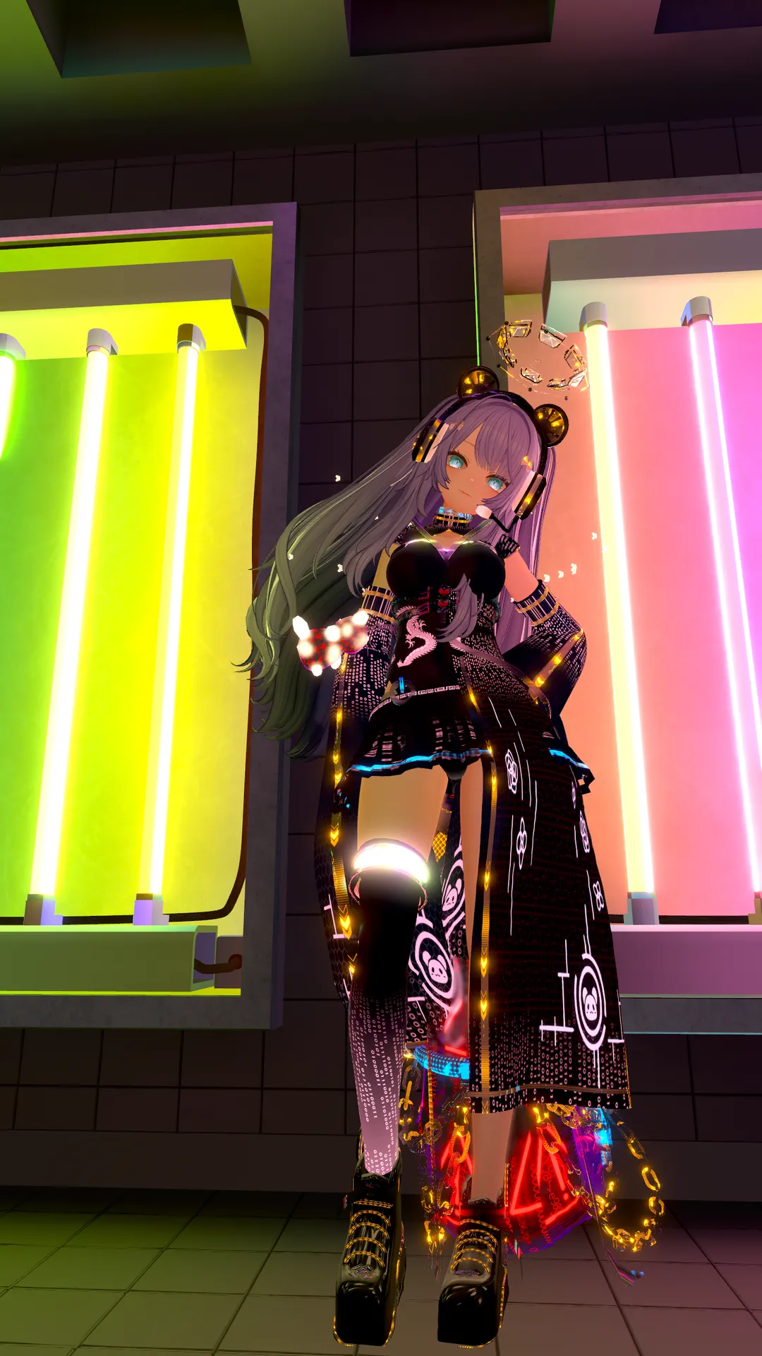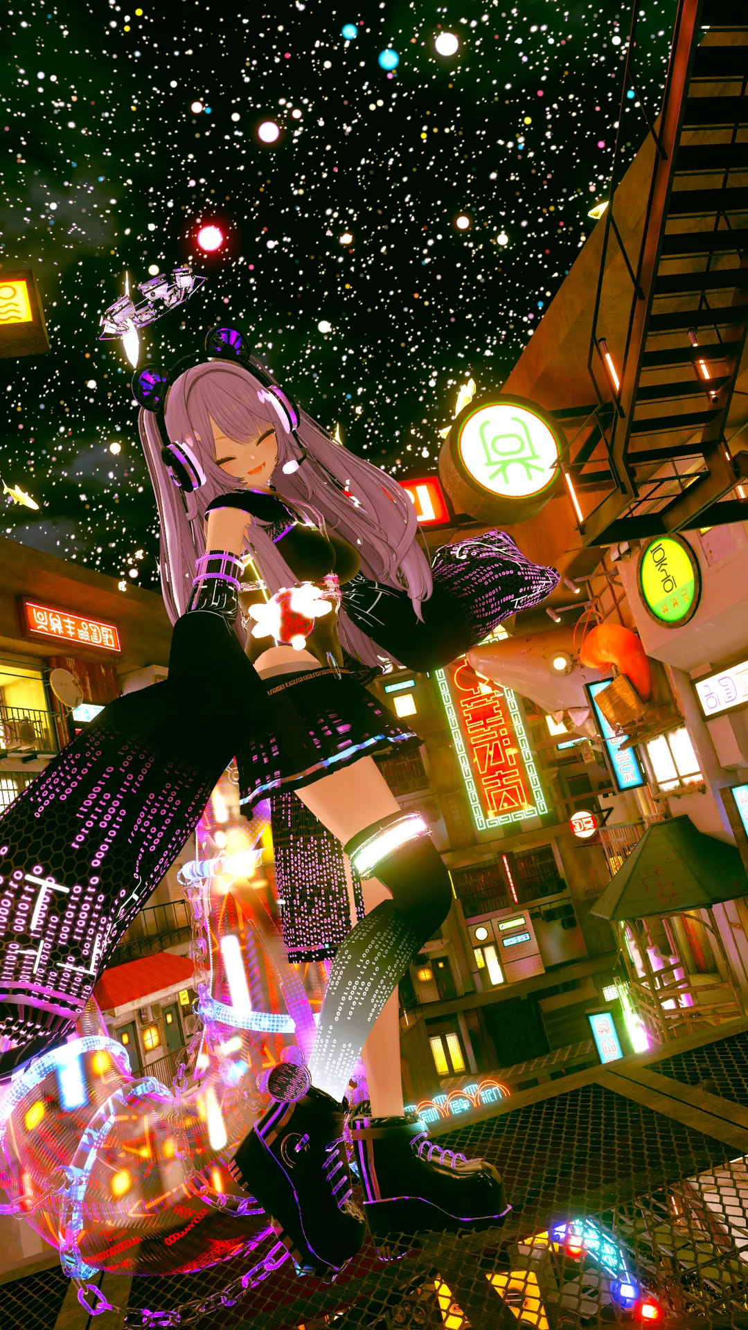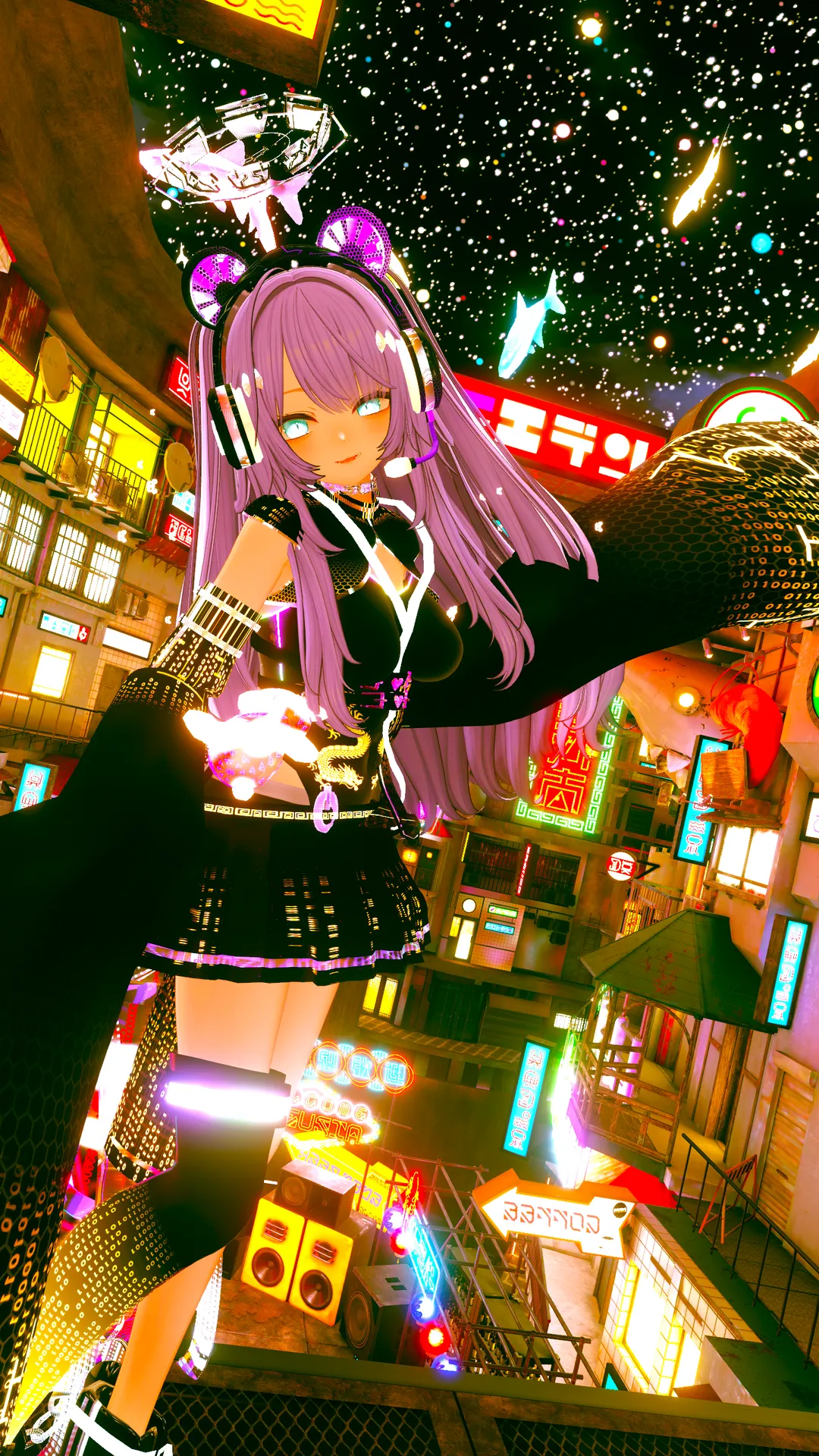 Xの抽選キャンペーンでいただいたCONNECT_tuyuさんの衣装を真央ちゃんに着せてみましたnアイドルみを感じたので真央ちゃんを可愛さ全振りに!nネオンの街並みやステージ上の似合う改変になってます