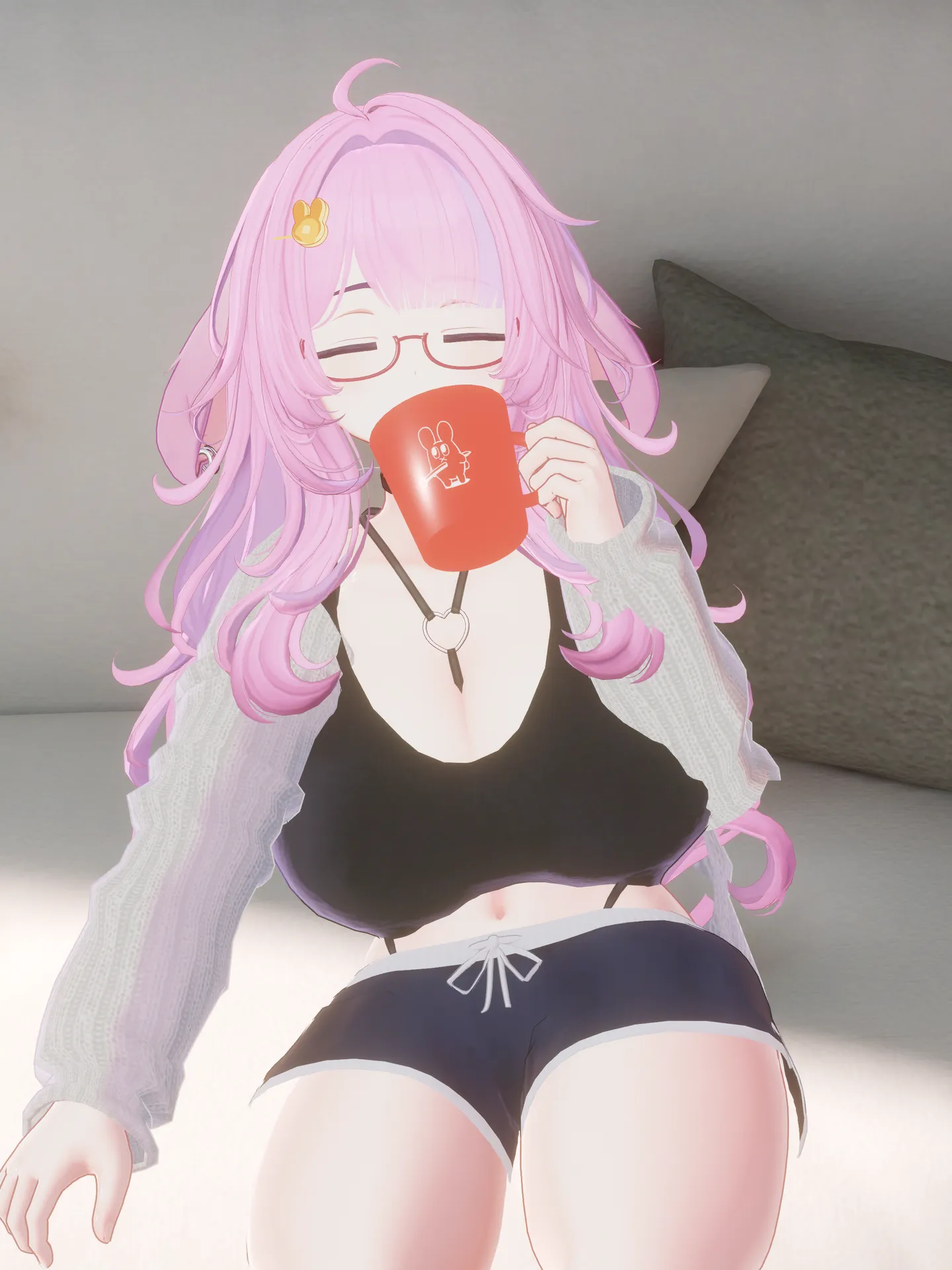 イメリスちゃん用のカーディガンとトップスにnにばんちゃんのデフォルトショートパンツでn朝のゆったり感を出してみました
