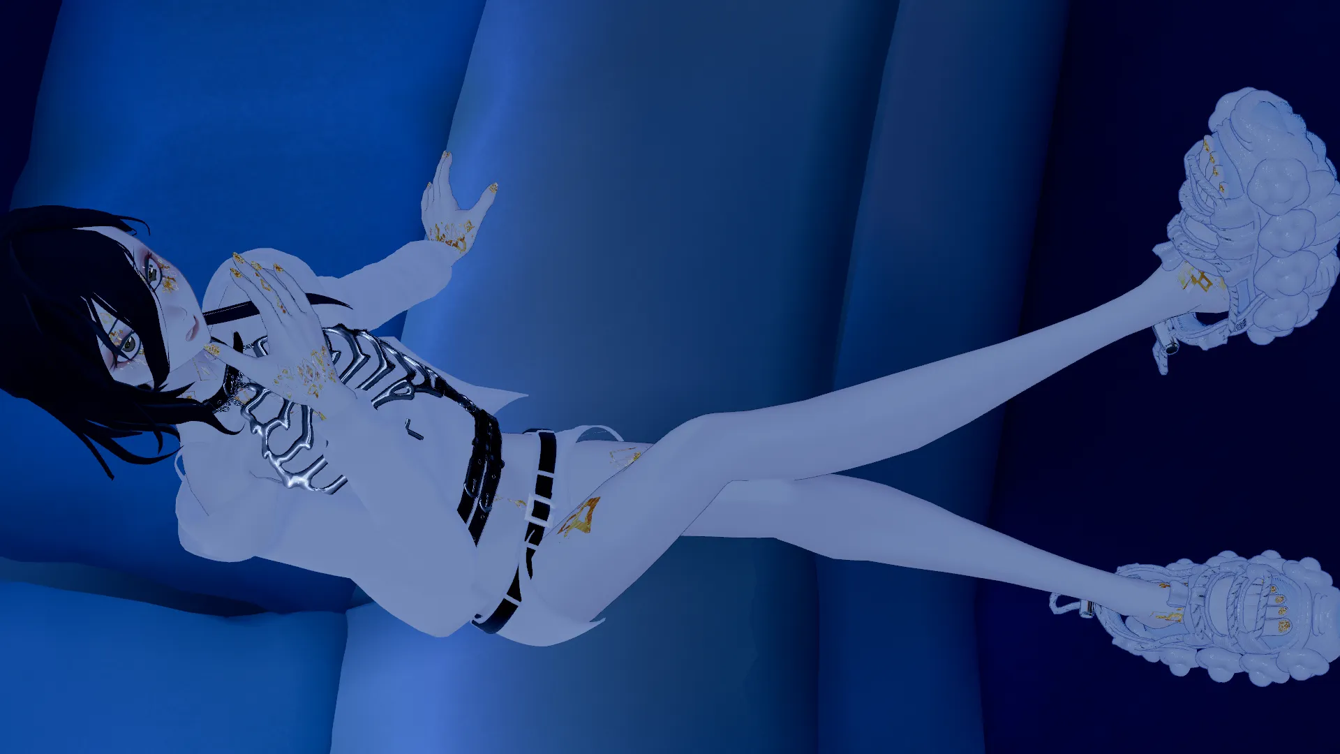 怪しげな感じを出したくて改変しましたrn中性的だけどちょっと色っぽい雰囲気の人になってたら嬉しいですrnお洋服はnEkoHako(EH6666)さんのTankTop Outfitですが現在非公開のためリンクなしですrnrnまた、メイク、アイテクスチャは自作です、また、宝石マテリアルの顔用マスクも少し改変を入れています