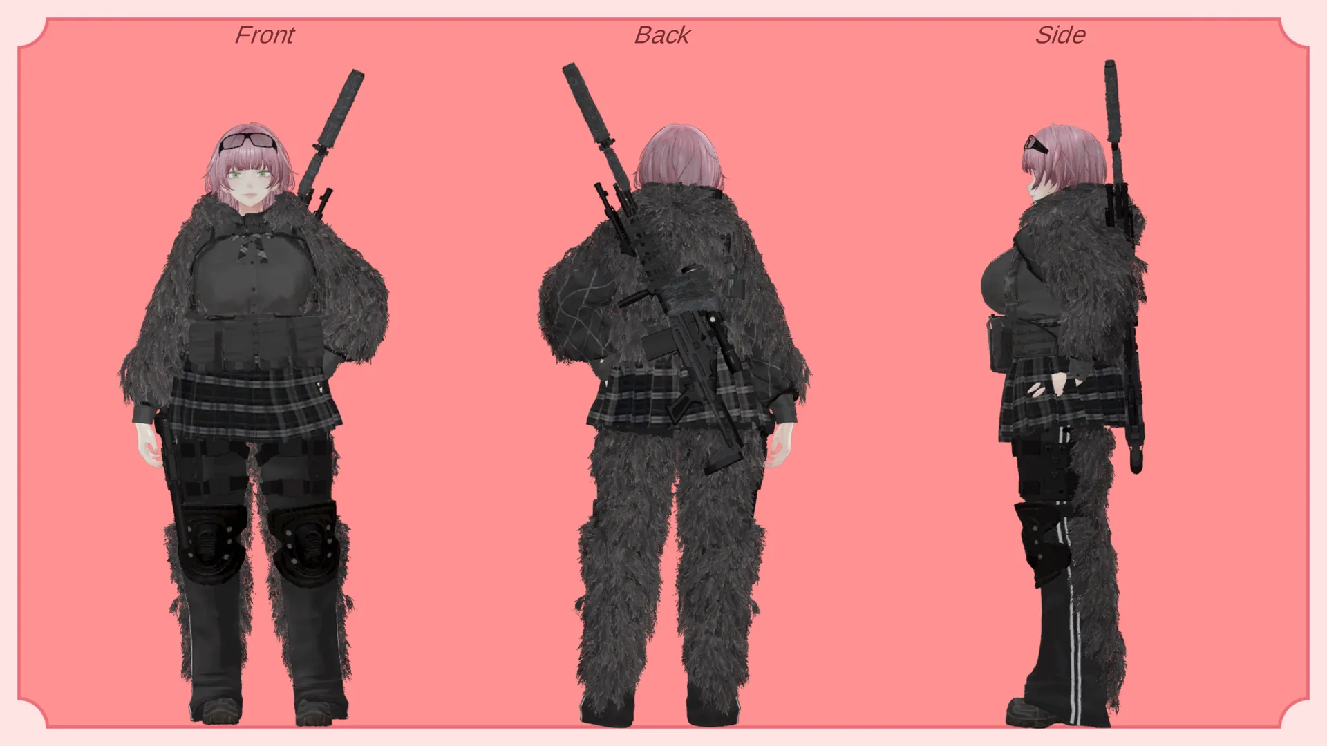個性を出したかったのでギリースーツを着せてみました。rnギリースーツは海外の3Dモデル販売サイトで購入したものです。