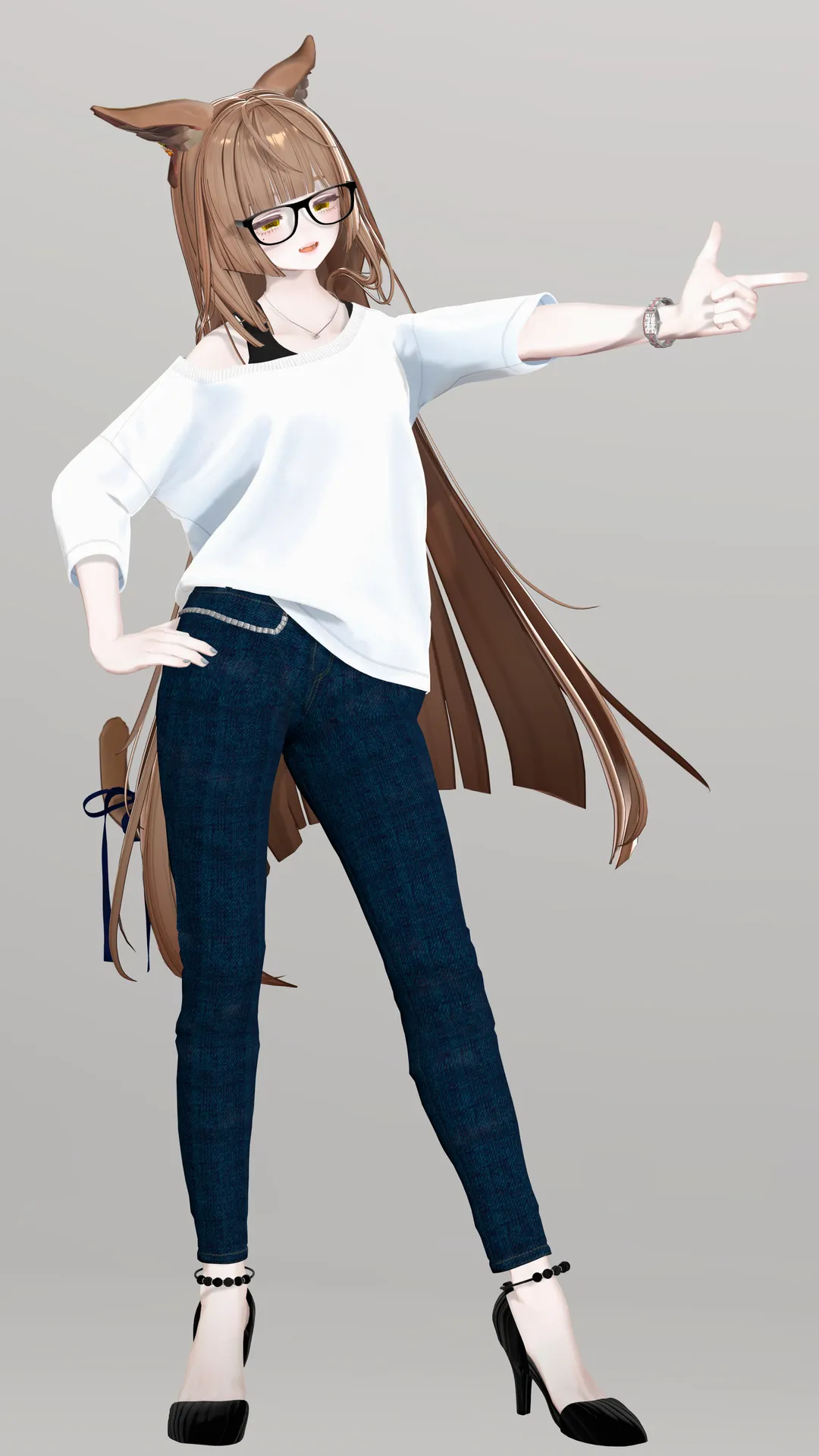 Nekonakuカジュアルでカッコイイお姉さんなマリシアを目指してみました。rn複数の衣装から寄せ集めたので、マテリアル数とかの最適化は推して知るべし…rnrn服rn・トップス・インナー:元カノが着てた部屋着 からタンクトップのみrn・トップス・アウター:【ルームウェア】Lactone からシャツのみrn・ボトムス:Marycia専用 Skinnyrn・ハイヒール:Ruffle Ribbon Dress からハイヒールのみrnrnその他rn・髪:LV.2+ Fancy_Hairrn・アイテクスチャ:見つめておねーさん Eye Textures 18colorsrn・メイク:ChuruchuruMakeuprn・メガネフレーム:黒縁めがねrn・メガネレンズ:リアル近視レンズシェーダー採用メガネ (近視メガネ(有料・高機能版))rn・ネックレス:Heart necklacern・腕時計:OSC Analog Watch [Almach]rn・しっぽリボン:しっぽリボン[for Marycia]