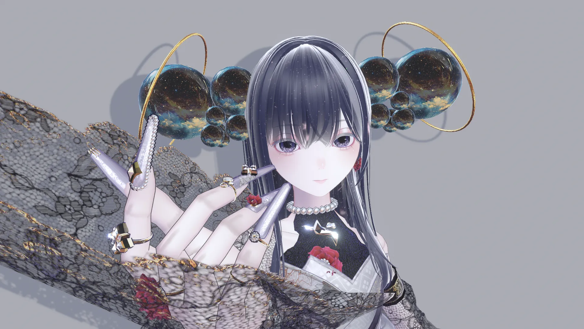 月のシニヨンと髪に星空のマテリアルを使ってお月見スタイルです