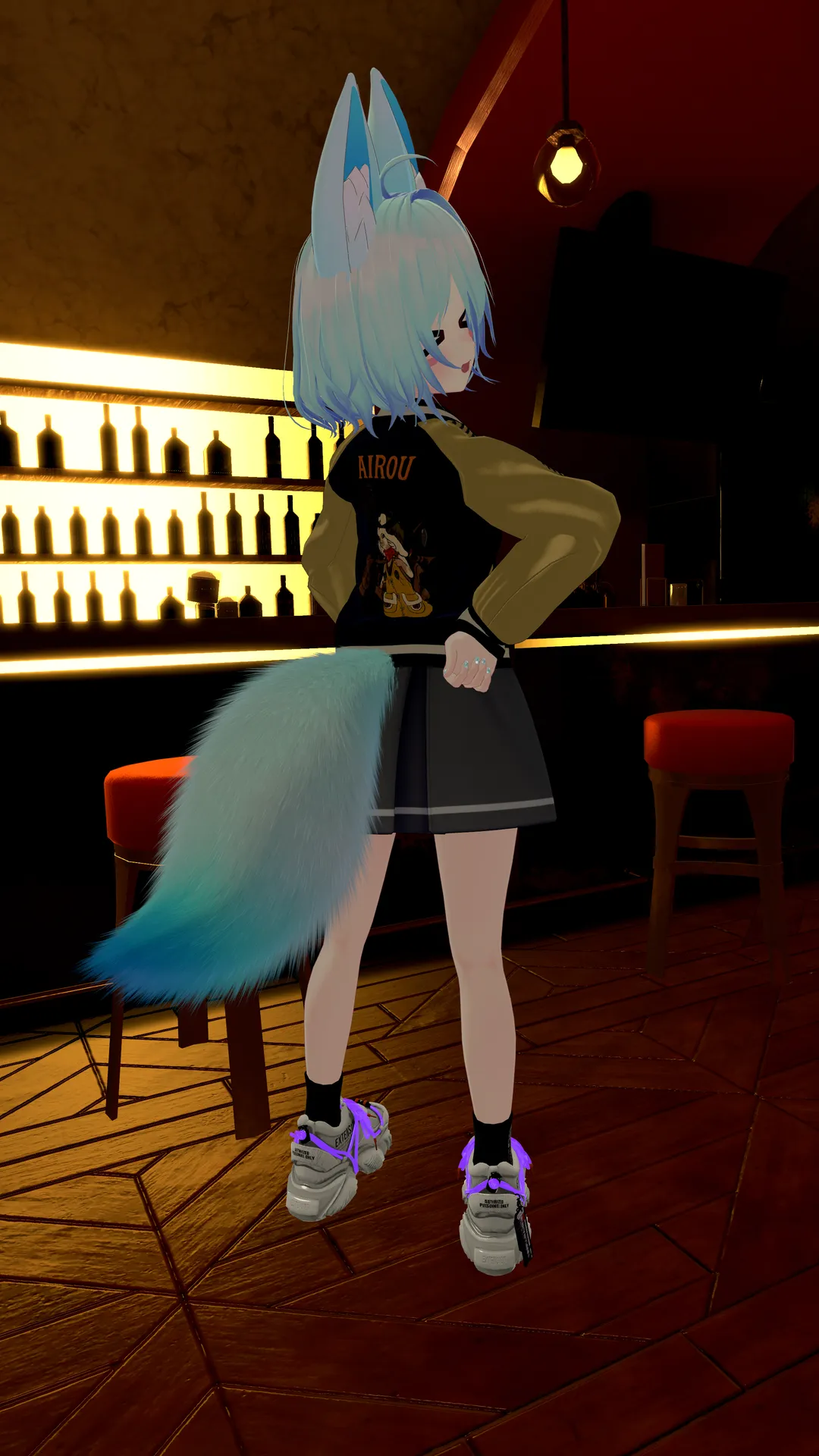 お友達と一緒にスカジャンきてみました!rnrnちょこっとインナーとかスカートとか靴を組み合わせてアレンジしてみました