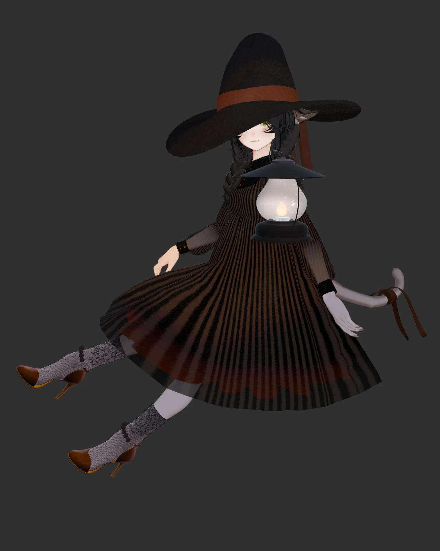 Helloween改変rnrn三つ編み部分と帽子は自作です。rnワンピースは販売しています✨️rnrnランタンに今は販売中止されているパーティクルを仕込んでいます。rnrnパンプス・靴下は、NookNookさんファンボックス、PomPomSalopetteを着用させていただきました✨️rnhttps://www.fanbox.cc/@osatoubox