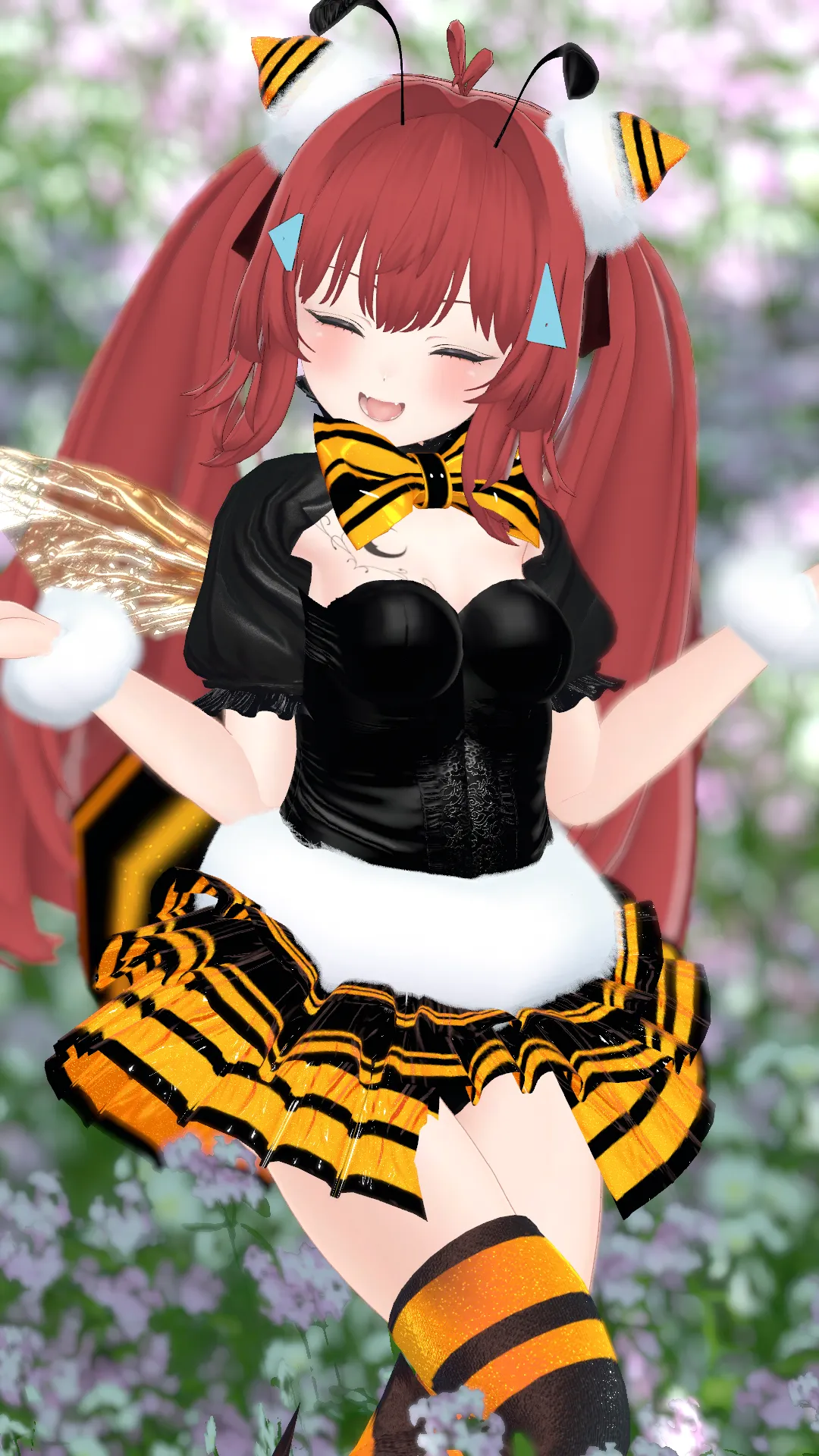 Enchanted_tim様の新作3D衣装「HoneyBee」とrnE_NAIL専用マテリアル「HoneyBee」のrnアンバサダーをやらせて頂いています!rn3D衣装はラグジュアリーでちょっとセクシーな蜂モチーフの衣装ですっrn今回は屋外の花畑で撮影しましたが、室内のしっとりとしたライティングで撮っても映えます〇rnネイルマテリアルはクリアネイルで、アバター素体の自爪を活かせますrn衣装は2025年10月19日までセール予定なので、要チェックです!
