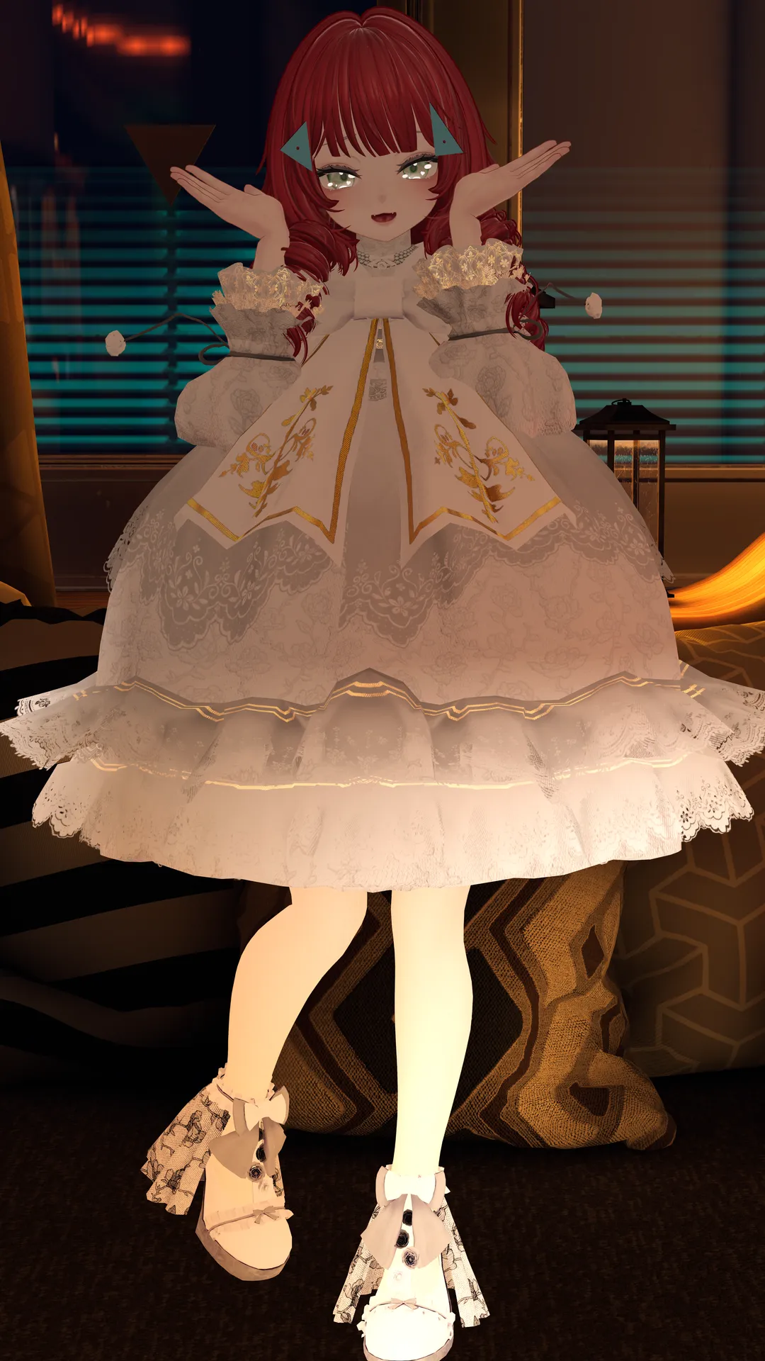 前々から作りたいと思ってたバニラお嬢様改変を作りました。rn非対応改変になるかと思って、腰が激重でした(Unity&blender力不足のため)rnぬんぬん製作所様の対応衣装のおかげで楽でしたが!!!!!!!rn改変のきっかけはネコノテアートワークス様の「例のテクスチャ」を使ってみたかったので…!!rnコーデの肝は髪型です。rn見かけた瞬間バニラに似合うと確信したので、8月末に買ってずっと積んでいました。クズ!rnバニラは良いぞ…超絶可愛いし、一発ネタにも使える。