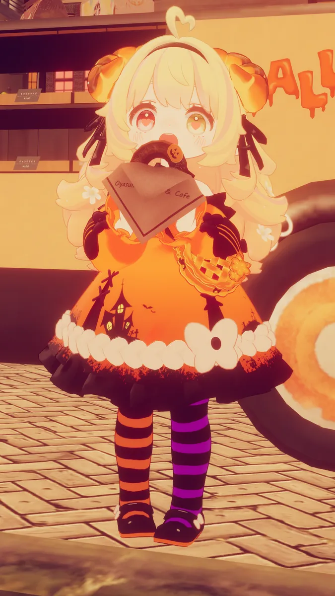 ハロウィンにのっかりたいなどと供述しておりrnrnまる印さんのハロウィン改変テクスチャ可愛すぎるので見て~~~~~~~~~~~~!!!!!rnあとコロネちゃんのデフォルト衣装どんだけポテンシャル高いのか…完成されすぎてる…rnスカートの窓はライティングの暗い場所で光るようにしましためっちゃ楽しかった( ・ㅂ・)و ̑̑ グッ !